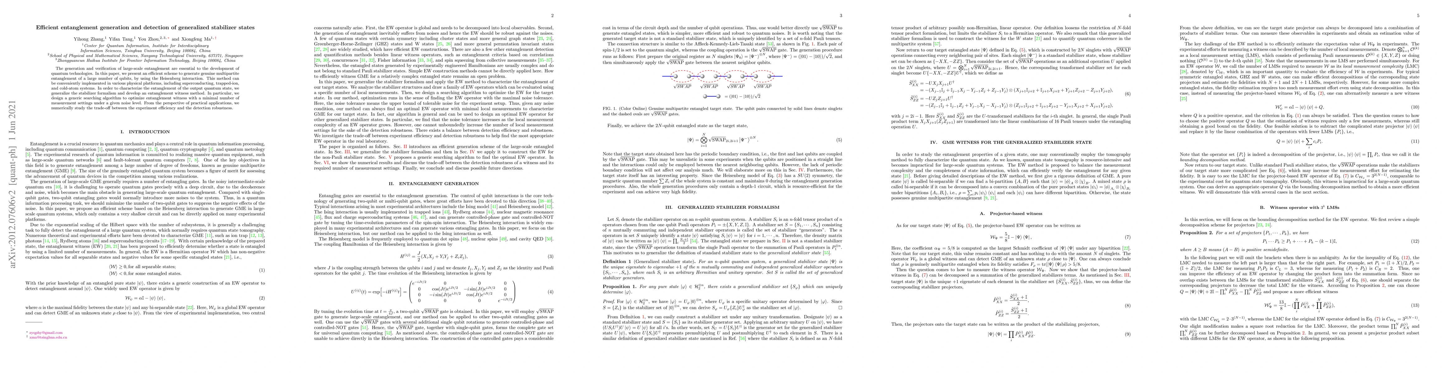 This paper presents an efficient scheme for generating large-scale multipartite entanglement using Heisenberg interaction, applicable across various physical platforms. It also develops a generalized stabilizer formalism and an entanglement witness method for characterizing the entanglement, optimizing detection with minimal measurements under noise.