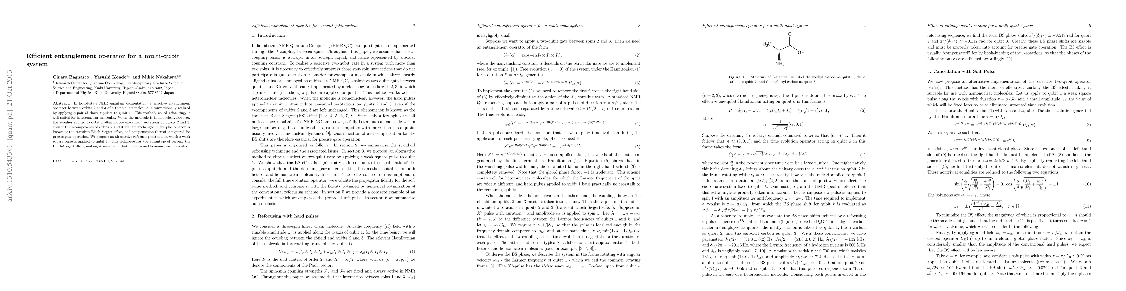 In liquid-state NMR quantum computation, a selective entanglement operator between qubits 2 and 3 of a three-qubit molecule is conventionally realized by applying a pair of short $\pi$-pulses to qubit 1. This method, called refocusing, is well suited for heteronuclear molecules. When the molecule is homonuclear, however, the $\pi$-pulses applied to qubit 1 often induce unwanted $z$-rotations on qubits 2 and 3, even if the $z$-components of qubits 2 and 3 are left unchanged. This phenomenon is known as the transient Bloch-Siegert effect, and compensation thereof is required for precise gate operation. We propose an alternative refocusing method, in which a weak square pulse is applied to qubit 1. This technique has the advantage of curbing the Bloch-Siegert effect, making it suitable for both hetero- and homonuclear molecules.