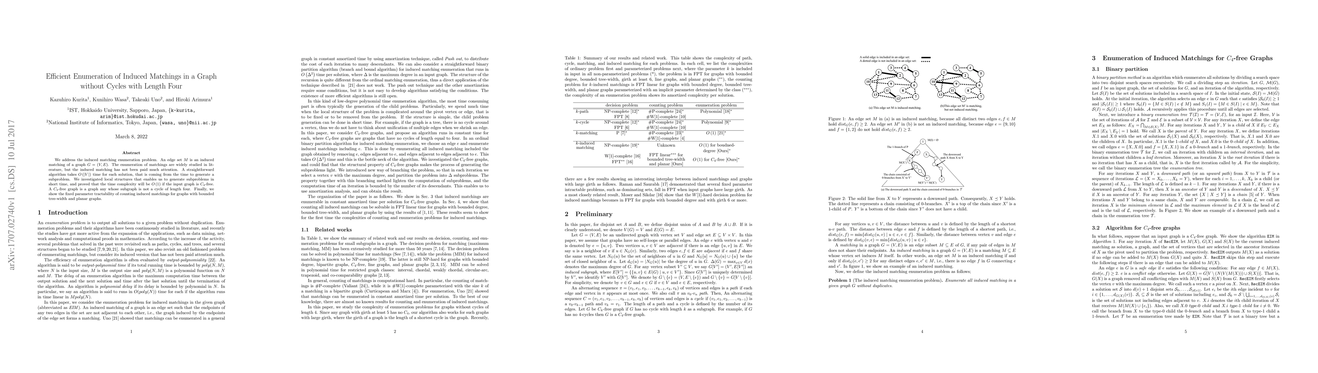 Researchers have developed a more efficient algorithm to find induced matchings in graphs without cycles of length four, reducing time complexity from O(|V|) to O(1), with implications for fixed parameter tractability in specific graph classes.
