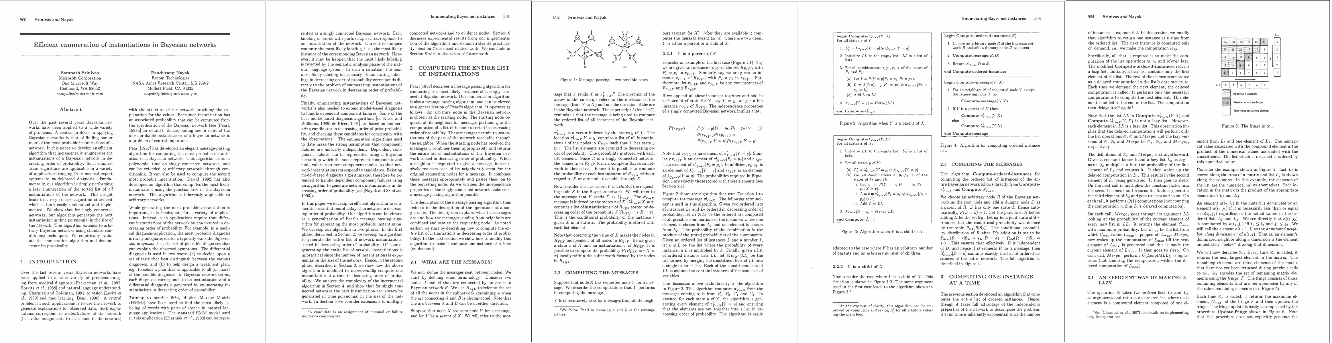 This paper presents an efficient algorithm for incrementally enumerating the most probable instantiations of a Bayesian network in decreasing order of probability. The algorithm performs lazy enumeration and is polynomial in time for singly connected networks, extending to arbitrary networks using conditioning techniques.