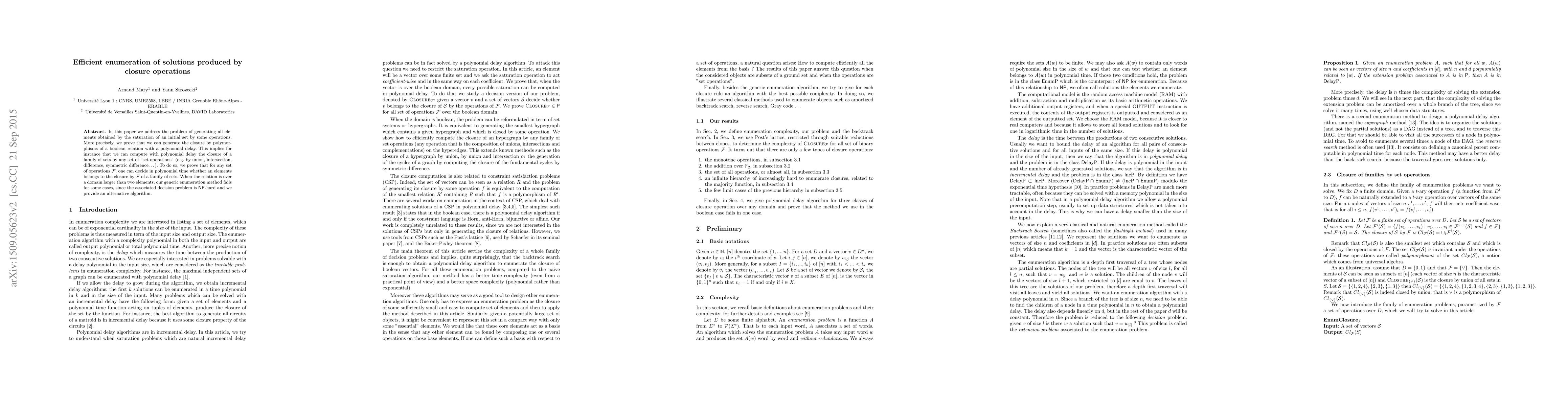 This paper presents a method for efficiently generating all elements obtained by saturating an initial set through specified operations, achieving polynomial delay. It proves that the closure of a boolean relation by polymorphisms can be computed with polynomial delay, applicable to set operations like union and intersection. For larger domains, an alternative algorithm is provided due to NP-hardness of the decision problem.