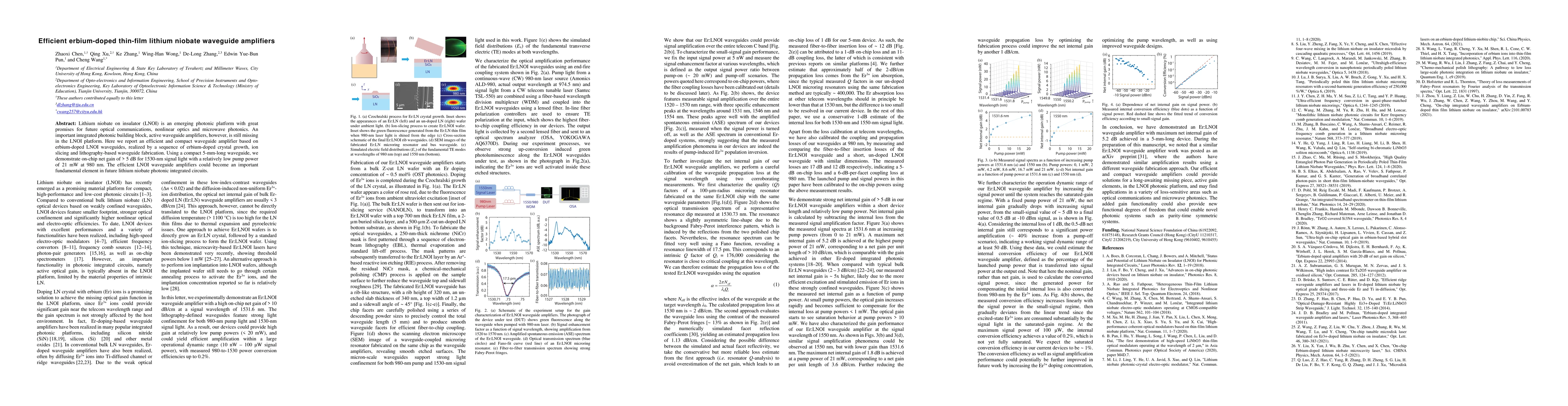 This paper introduces an efficient, compact erbium-doped waveguide amplifier using lithium niobate on insulator (LNOI) technology, achieving a net gain of over 5 dB for 1530-nm signal light with minimal pump power, highlighting its potential for future photonic integrated circuits.