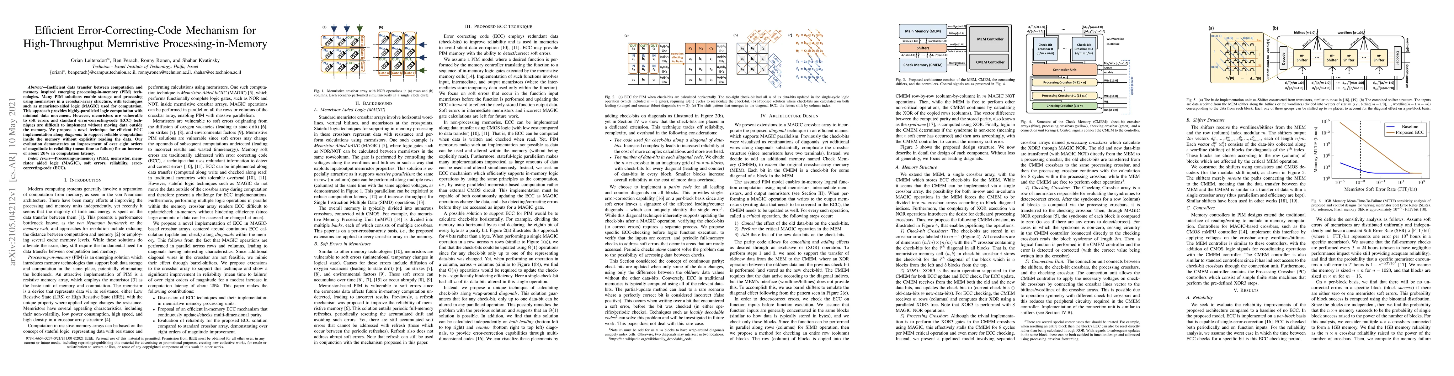 This paper proposes a novel error-correcting-code mechanism for processing-in-memory using memristors, enabling efficient computation within memory without data transfer. The technique significantly improves reliability by over eight orders of magnitude while increasing latency by approximately 26%.