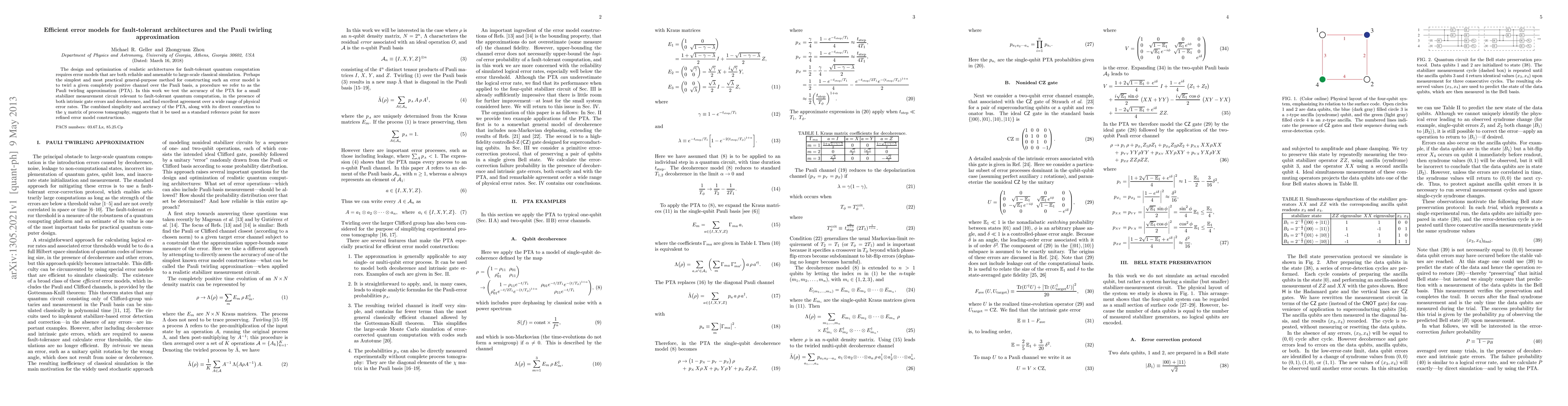 This paper explores efficient error models for fault-tolerant quantum computing, focusing on the Pauli twirling approximation (PTA) for constructing reliable error models. The PTA is shown to accurately simulate small stabilizer circuits under various error conditions, making it a practical and effective standard for error model construction.