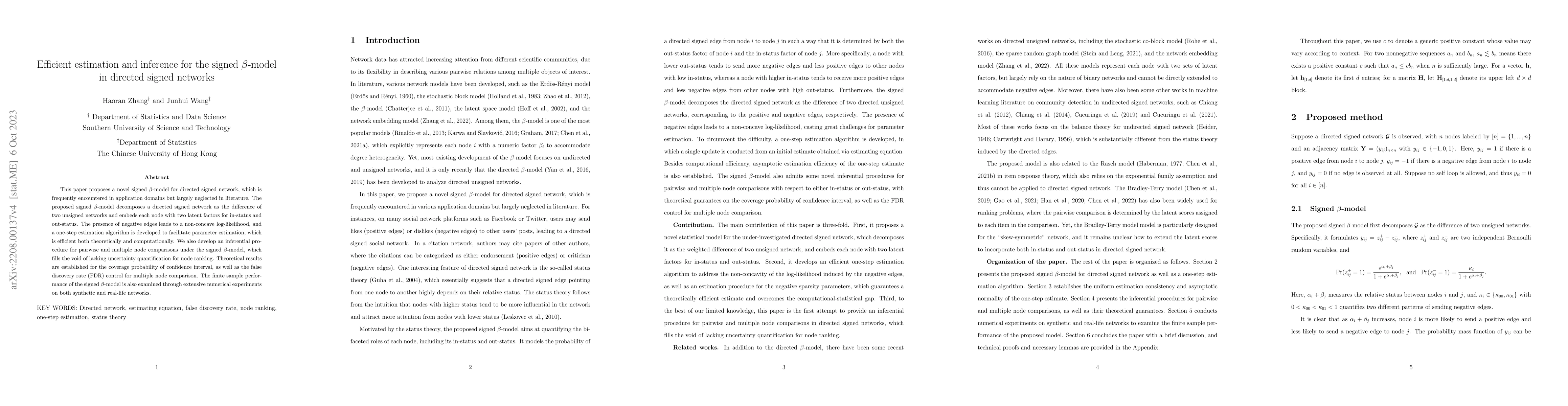 This paper introduces a novel signed $\beta$-model for directed signed networks, addressing the decomposition of such networks into two unsigned networks with latent factors. It develops an efficient estimation algorithm and inferential procedures for node comparisons, establishing theoretical results for confidence intervals and multiple hypothesis testing, and validating the model through numerical experiments.