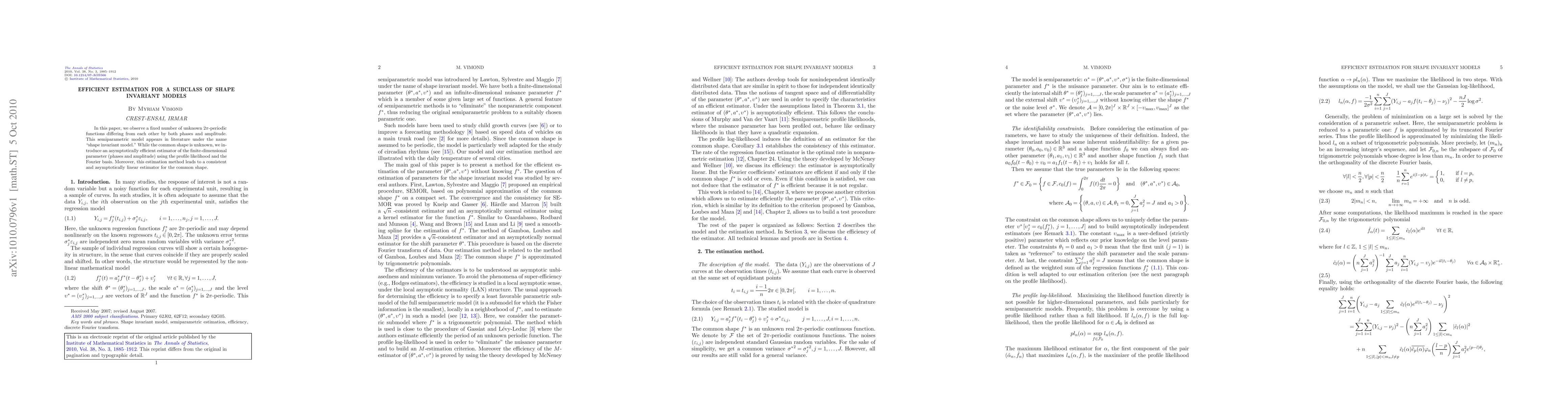 In this paper, we observe a fixed number of unknown $2\pi$-periodic functions differing from each other by both phases and amplitude. This semiparametric model appears in literature under the name "shape invariant model." While the common shape is unknown, we introduce an asymptotically efficient estimator of the finite-dimensional parameter (phases and amplitude) using the profile likelihood and the Fourier basis. Moreover, this estimation method leads to a consistent and asymptotically linear estimator for the common shape.