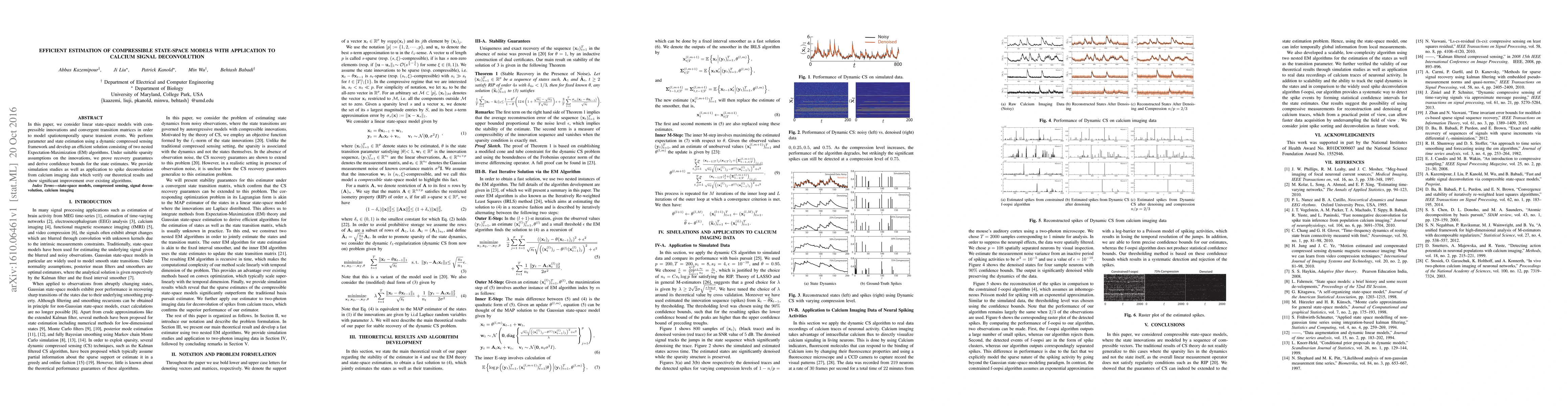 In this paper, we consider linear state-space models with compressible innovations and convergent transition matrices in order to model spatiotemporally sparse transient events. We perform parameter and state estimation using a dynamic compressed sensing framework and develop an efficient solution consisting of two nested Expectation-Maximization (EM) algorithms. Under suitable sparsity assumptions on the innovations, we prove recovery guarantees and derive confidence bounds for the state estimates. We provide simulation studies as well as application to spike deconvolution from calcium imaging data which verify our theoretical results and show significant improvement over existing algorithms.