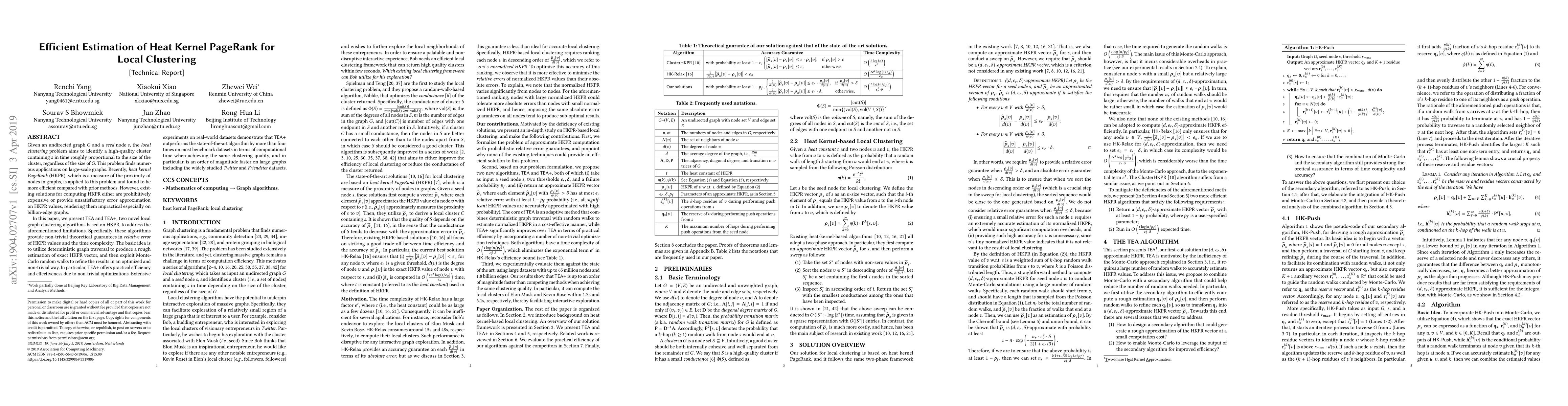 This paper introduces TEA and TEA+ algorithms for efficient local clustering in large-scale graphs using heat kernel PageRank (HKPR). The proposed methods provide theoretical guarantees on error and time complexity, significantly outperforming existing solutions in computational efficiency, especially on billion-edge graphs.
