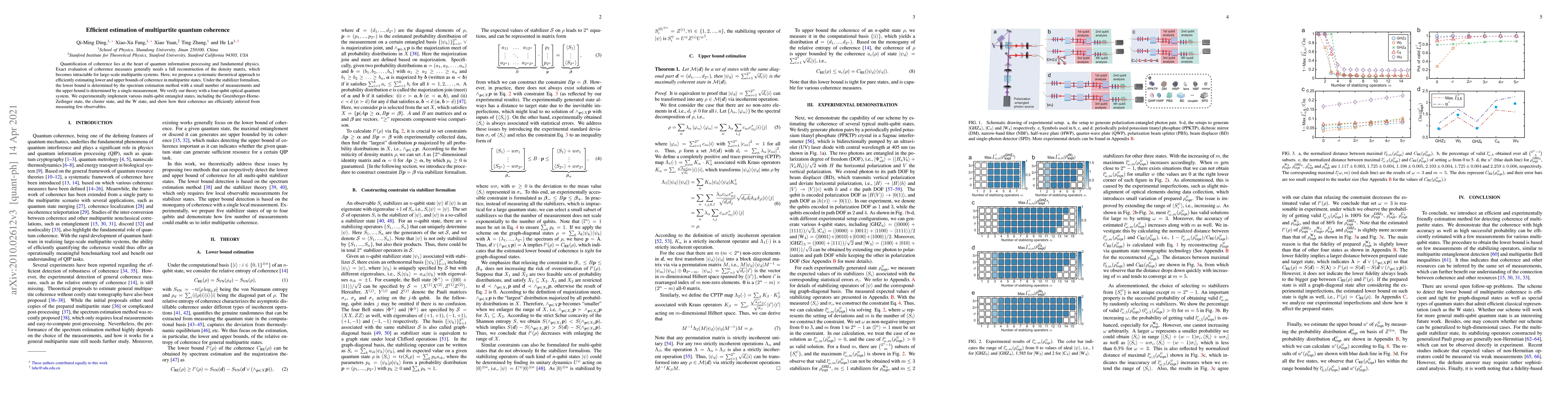 This paper proposes a theoretical approach to efficiently estimate lower and upper bounds of quantum coherence in multipartite systems, using the stabilizer formalism and minimal measurements. Experimental verification on a four-qubit optical quantum system demonstrates the practical application of the method to infer coherence in entangled states like the Greenberger-Horne-Zeilinger state.