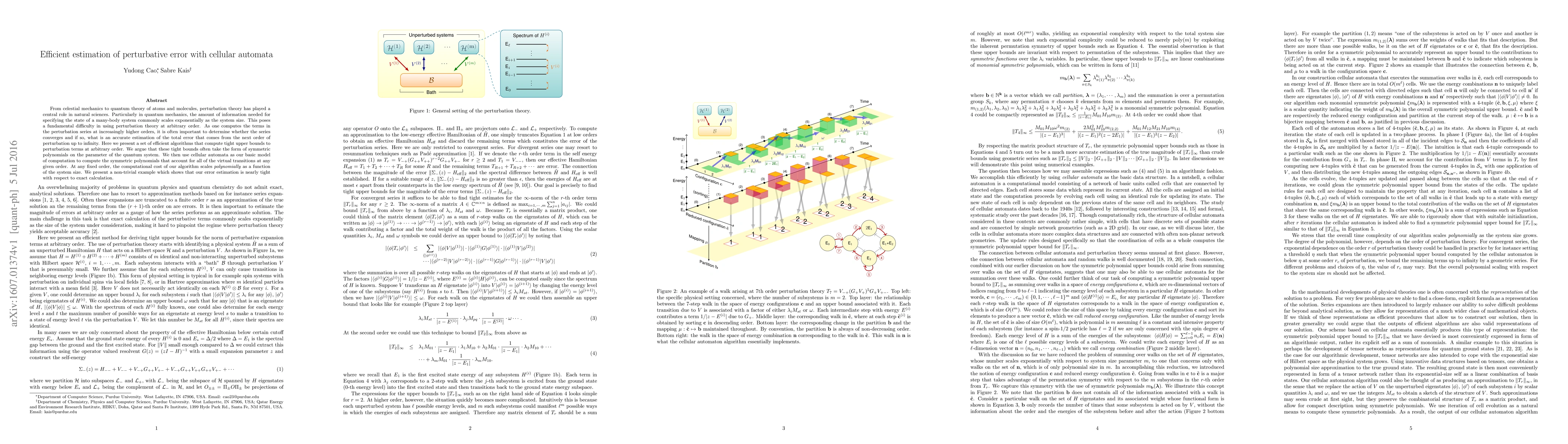 This paper introduces efficient algorithms for estimating perturbative errors in quantum mechanics, which often grow exponentially with system size. The algorithms compute tight upper bounds for perturbation terms as symmetric polynomials, using cellular automata for computation. The method scales polynomially with system size, demonstrated through a non-trivial example where the error estimation is nearly accurate.