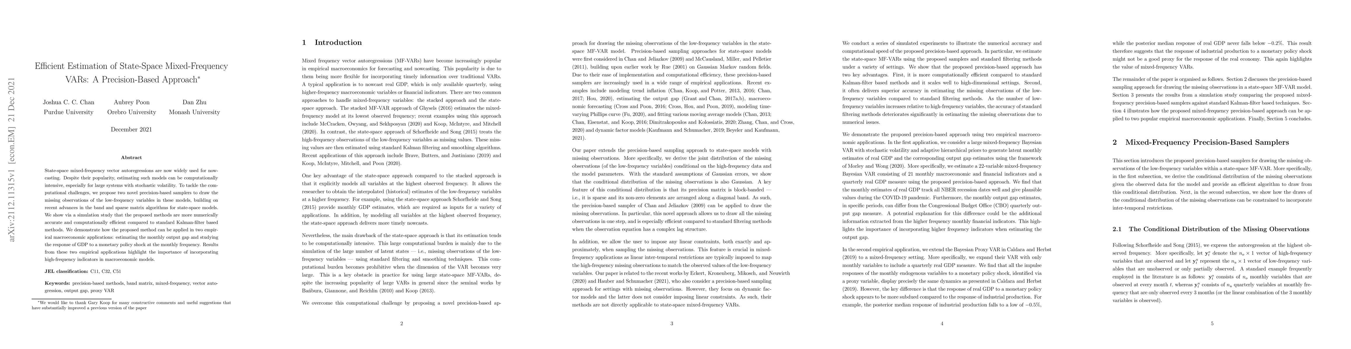 The paper introduces novel precision-based sampling techniques for mixed-frequency state-space VAR models, improving computational efficiency and accuracy compared to traditional Kalman-filter methods.