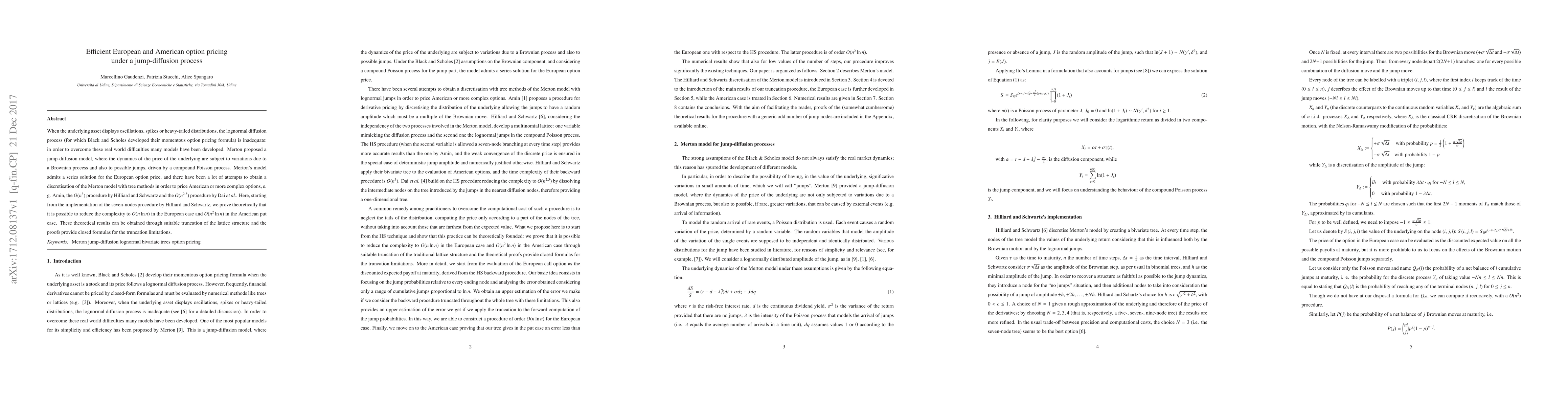 When the underlying asset displays oscillations, spikes or heavy-tailed distributions, the lognormal diffusion process (for which Black and Scholes developed their momentous option pricing formula) is inadequate: in order to overcome these real world difficulties many models have been developed. Merton proposed a jump-diffusion model, where the dynamics of the price of the underlying are subject to variations due to a Brownian process and also to possible jumps, driven by a compound Poisson process. Merton's model admits a series solution for the European option price, and there have been a lot of attempts to obtain a discretisation of the Merton model with tree methods in order to price American or more complex options, e. g. Amin, the $O(n^3)$ procedure by Hilliard and Schwartz and the $O(n^{2.5})$ procedure by Dai et al. Here, starting from the implementation of the seven-nodes procedure by Hilliard and Schwartz, we prove theoretically that it is possible to reduce the complexity to $O(n \ln n)$ in the European case and $O(n^2 \ln n)$ in the American put case. These theoretical results can be obtained through suitable truncation of the lattice structure and the proofs provide closed formulas for the truncation limitations.