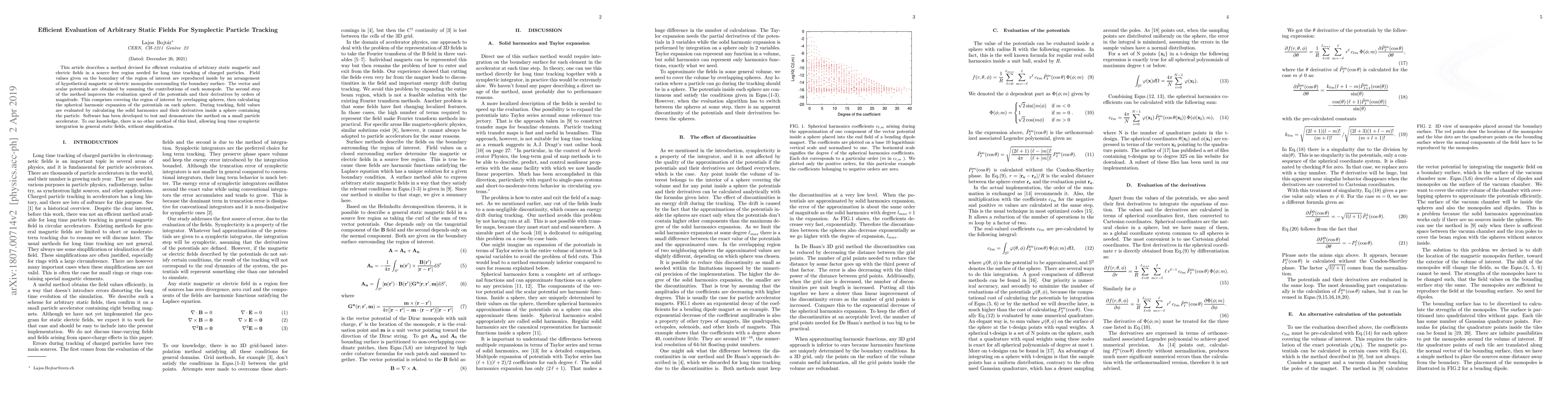 This paper proposes an efficient method for evaluating arbitrary static magnetic and electric fields for symplectic particle tracking, using monopoles and spherical harmonic expansions to significantly speed up potential calculations and their derivatives. The method was tested in a small particle accelerator, demonstrating its effectiveness for long-time tracking without simplifications.