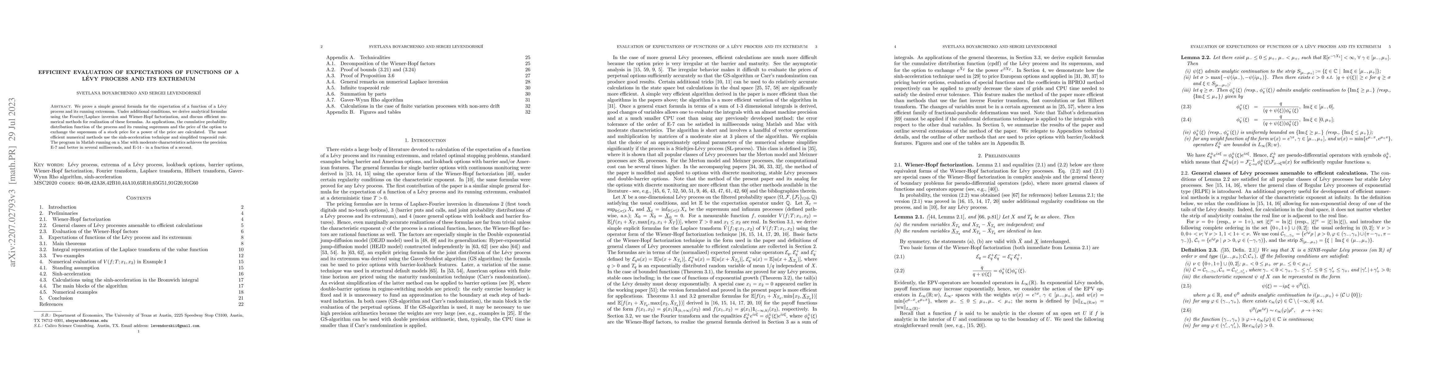 This paper presents general formulas for evaluating expectations of functions of a Lévy process and its running extremum, deriving analytical solutions under specific conditions and employing Fourier/Laplace inversion and Wiener-Hopf factorization. It also discusses efficient numerical methods, notably the sinh-acceleration technique and simplified trapezoid rule, achieving high precision in milliseconds.
