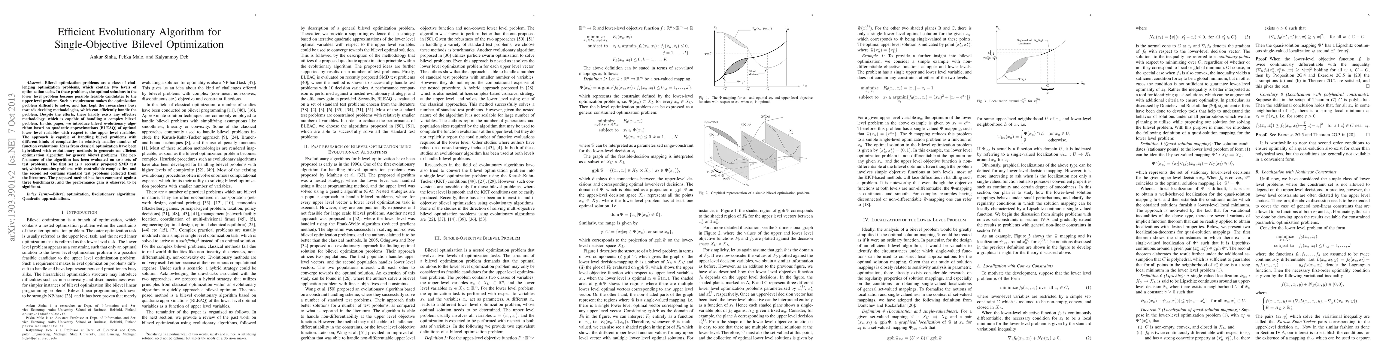 This paper introduces a bilevel evolutionary algorithm (BLEAQ) that uses quadratic approximations to efficiently solve single-objective bilevel optimization problems, demonstrating significant performance gains over benchmarks on both newly proposed and standard test problems.