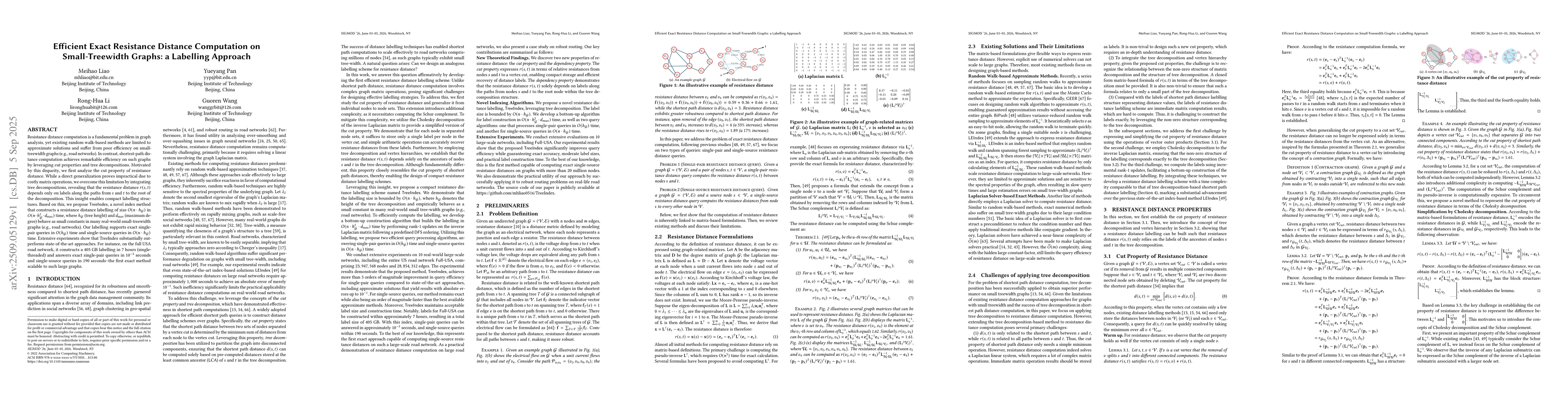 Resistance distance computation is a fundamental problem in graph analysis, yet existing random walk-based methods are limited to approximate solutions and suffer from poor efficiency on small-treewidth graphs (e.g., road networks). In contrast, shortest-path distance computation achieves remarkable efficiency on such graphs by leveraging cut properties and tree decompositions. Motivated by this disparity, we first analyze the cut property of resistance distance. While a direct generalization proves impractical due to costly matrix operations, we overcome this limitation by integrating tree decompositions, revealing that the resistance distance $r(s,t)$ depends only on labels along the paths from $s$ and $t$ to the root of the decomposition. This insight enables compact labelling structures. Based on this, we propose \treeindex, a novel index method that constructs a resistance distance labelling of size $O(n \cdot h_{\mathcal{G}})$ in $O(n \cdot h_{\mathcal{G}}^2 \cdot d_{\max})$ time, where $h_{\mathcal{G}}$ (tree height) and $d_{\max}$ (maximum degree) behave as small constants in many real-world small-treewidth graphs (e.g., road networks). Our labelling supports exact single-pair queries in $O(h_{\mathcal{G}})$ time and single-source queries in $O(n \cdot h_{\mathcal{G}})$ time. Extensive experiments show that TreeIndex substantially outperforms state-of-the-art approaches. For instance, on the full USA road network, it constructs a $405$ GB labelling in $7$ hours (single-threaded) and answers exact single-pair queries in $10^{-3}$ seconds and single-source queries in $190$ seconds--the first exact method scalable to such large graphs.