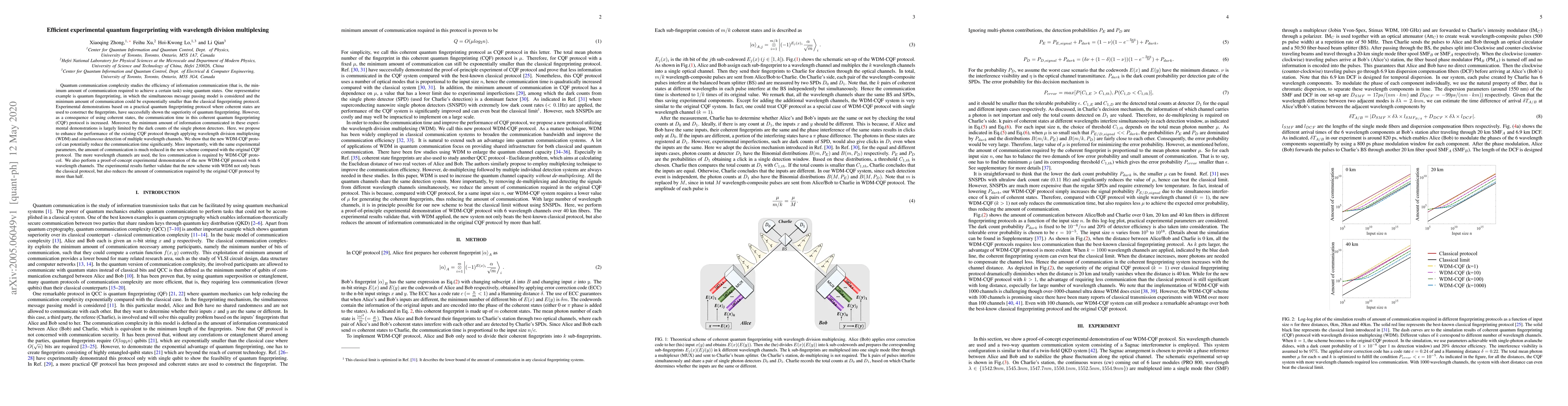 This paper proposes an enhanced quantum fingerprinting protocol using wavelength division multiplexing (WDM) to significantly reduce communication time and amount compared to the original coherent quantum fingerprinting protocol. Experimental results with 6 wavelength channels demonstrate a substantial reduction in communication, validating the efficiency of the new WDM-CQF protocol.