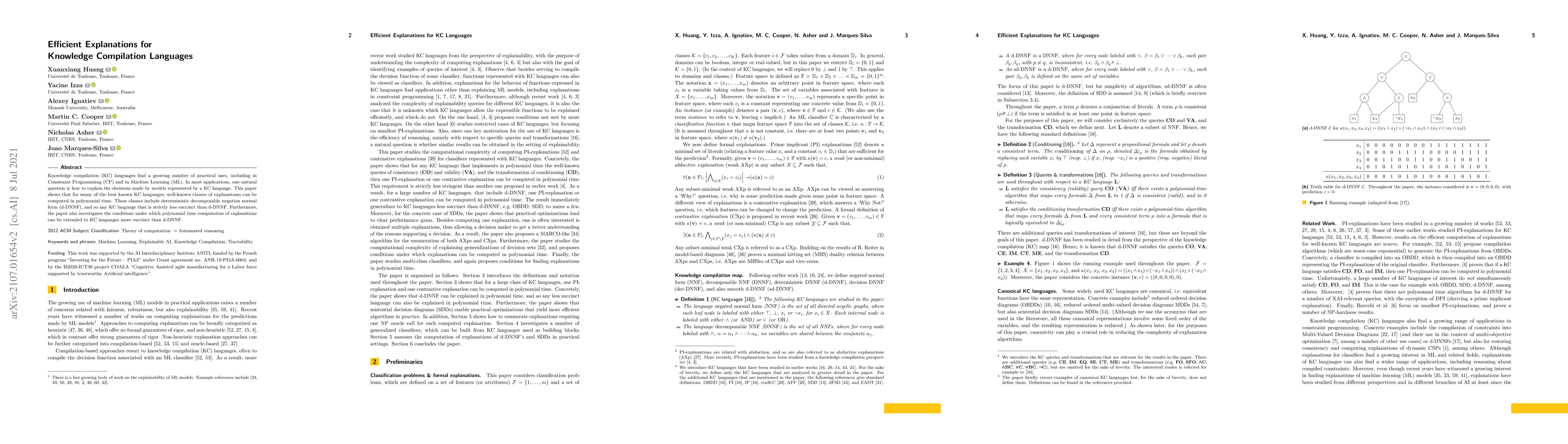 This paper demonstrates that polynomial-time explanations can be computed for several prominent knowledge compilation languages, including d-DNNF, and explores the feasibility of extending this capability to more succinct languages. The findings enhance the interpretability of models in applications like Constraint Programming and Machine Learning.