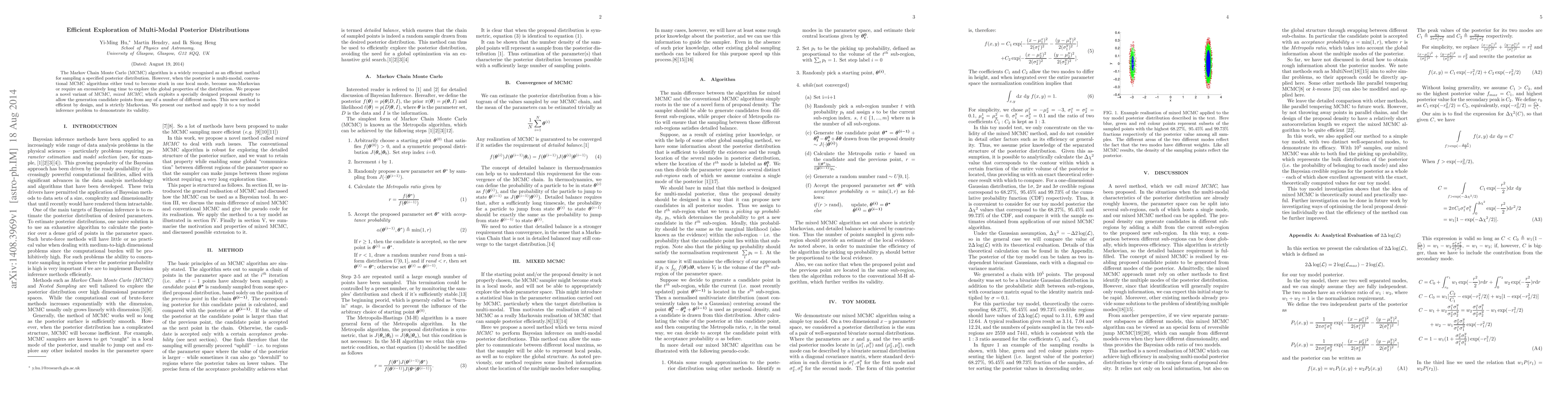 Researchers propose a new MCMC algorithm called mixed MCMC to efficiently explore multi-modal posterior distributions. This method uses a specially designed proposal density to generate candidate points from any mode, ensuring strict Markovian behavior and improved efficiency.