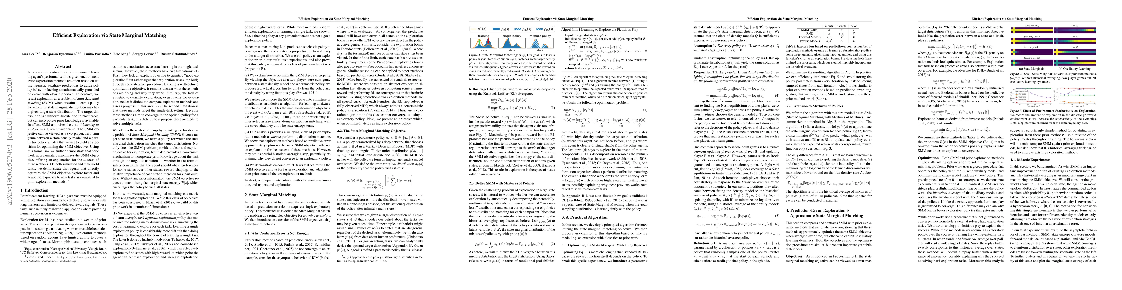 Researchers propose a new method for efficient exploration in reinforcement learning called State Marginal Matching (SMM), which optimizes a policy to match a target state distribution. This approach outperforms existing methods on both simulated and real-world tasks.