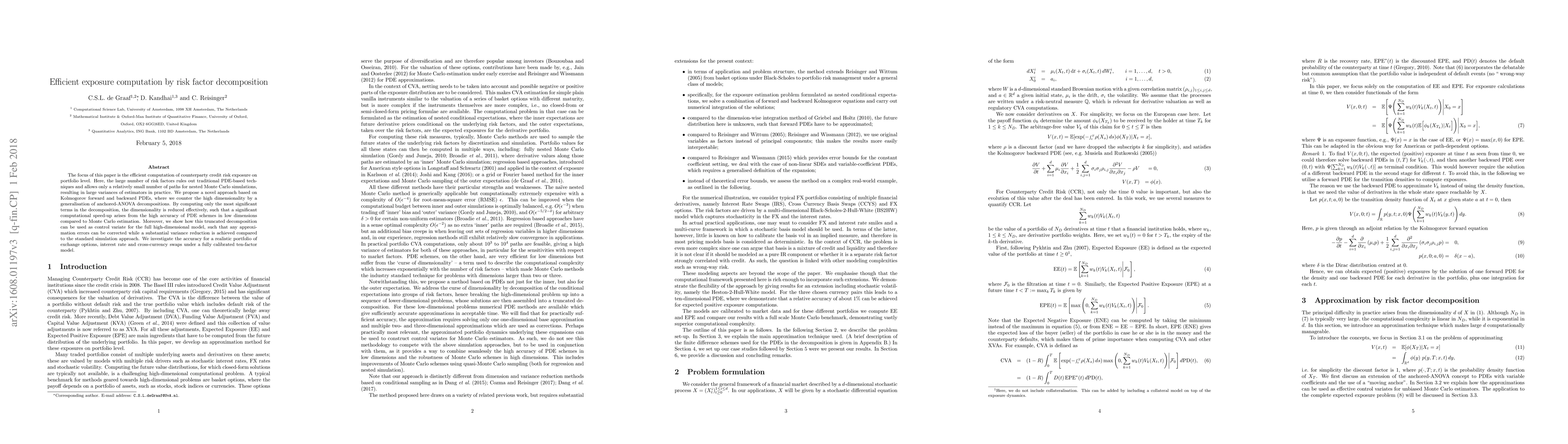 This paper presents an efficient method for calculating credit risk exposure in portfolios with numerous risk factors. It introduces a novel approach using Kolmogorov PDEs and anchored-ANOVA decompositions to reduce dimensionality, significantly speeding up computations. The method also serves as a control variate to correct approximation errors and reduce variance in simulations, demonstrated through a realistic portfolio example under a ten-factor model.