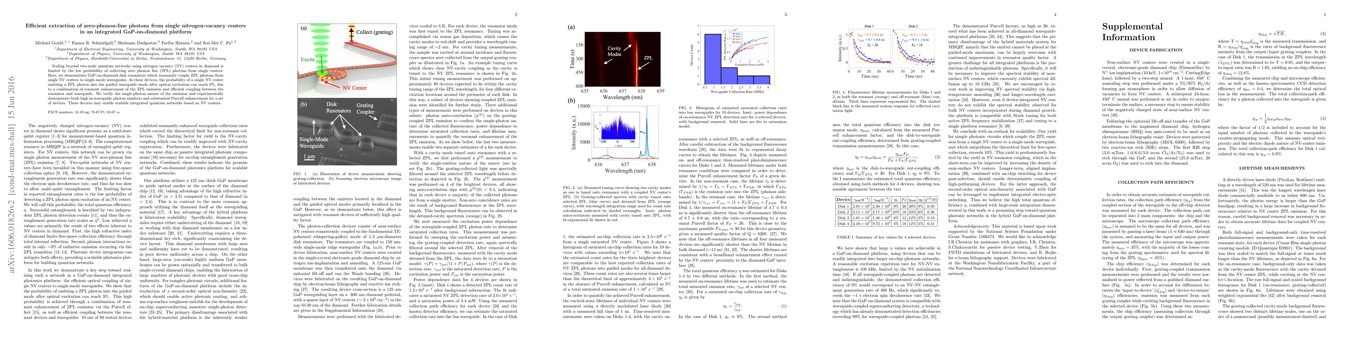 Researchers demonstrate GaP-on-diamond disk resonators that efficiently extract zero-phonon-line (ZPL) photons from single nitrogen-vacancy centers in diamond, achieving a 9% emission probability into guided modes, thus enabling scalable quantum networks. The devices show high photon numbers and substantial Purcell enhancement, validating the single-photon nature of the emission.