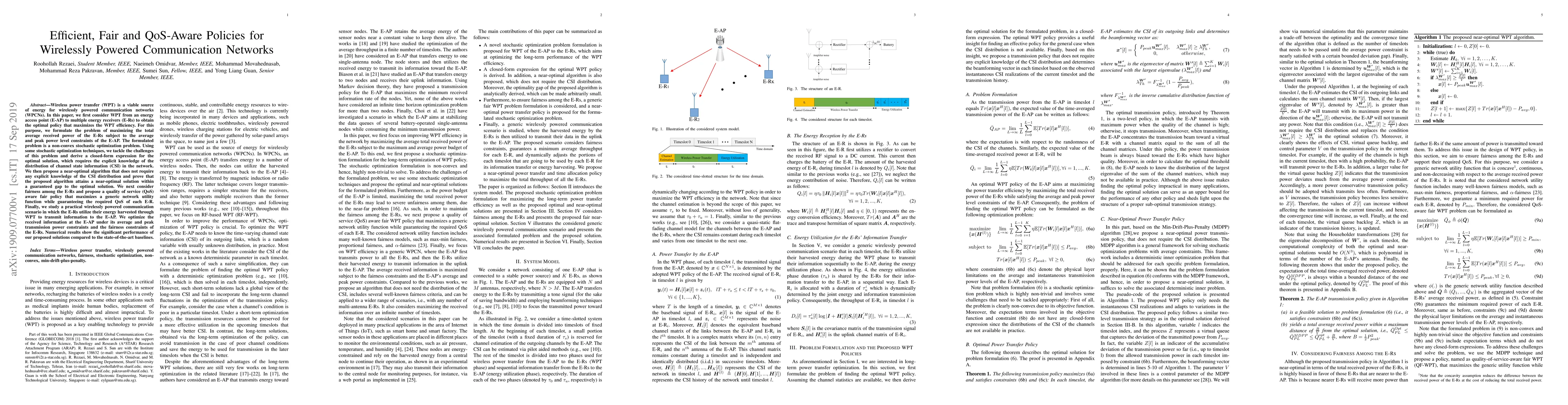 This paper develops efficient, fair, and QoS-aware policies for wirelessly powered communication networks (WPCNs) by optimizing wireless power transfer (WPT) from an energy access point to multiple receivers. It proposes a near-optimal algorithm for maximizing WPT efficiency and introduces a QoS-aware fair policy to ensure network utility while maintaining fairness among receivers. Numerical results demonstrate superior performance compared to existing methods.