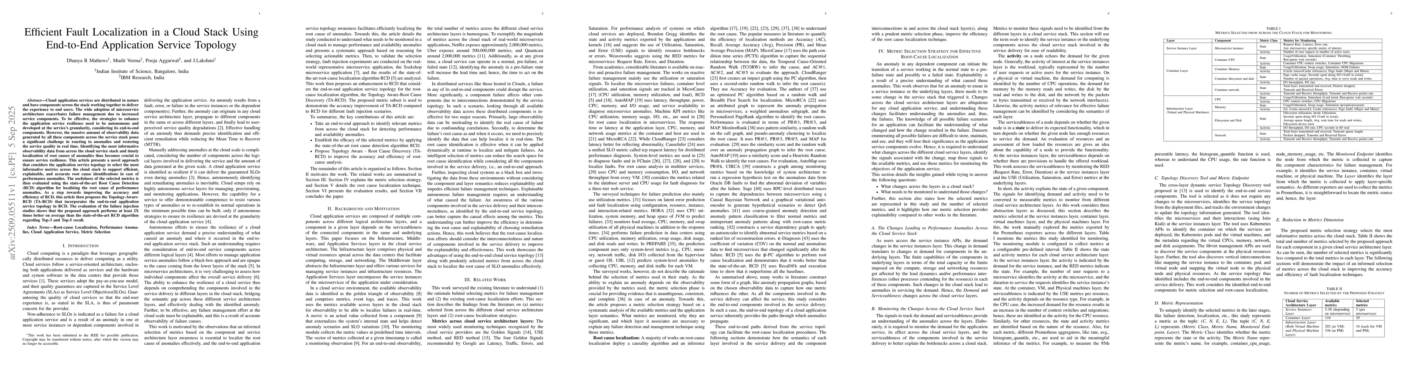 Cloud application services are distributed in nature and have components across the stack working together to deliver the experience to end users. The wide adoption of microservice architecture exacerbates failure management due to increased service components. To be effective, the strategies to enhance the application service resilience need to be autonomous and developed at the service's granularity, considering its end-to-end components. However, the massive amount of observability data generated by all these components across the service stack poses a significant challenge in reacting to anomalies and restoring the service quality in real time. Identifying the most informative observability data from across the cloud service stack and timely localization of root causes of anomalies thus becomes crucial to ensure service resilience. This article presents a novel approach that considers the application service topology to select the most informative metrics across the cloud stack to support efficient, explainable, and accurate root cause identifications in case of performance anomalies. The usefulness of the selected metrics is then evaluated using the state-of-the-art Root Cause Detection (RCD) algorithm for localizing the root cause of performance anomalies. As a step towards improving the accuracy and efficiency of RCD, this article then proposes the Topology-Aware-RCD (TA-RCD) that incorporates the end-to-end application service topology in RCD. The evaluation of the failure injection studies shows that the proposed approach performs at least 2X times better on average than the state-of-the-art RCD algorithm regarding Top-3 and Top-5 recall.