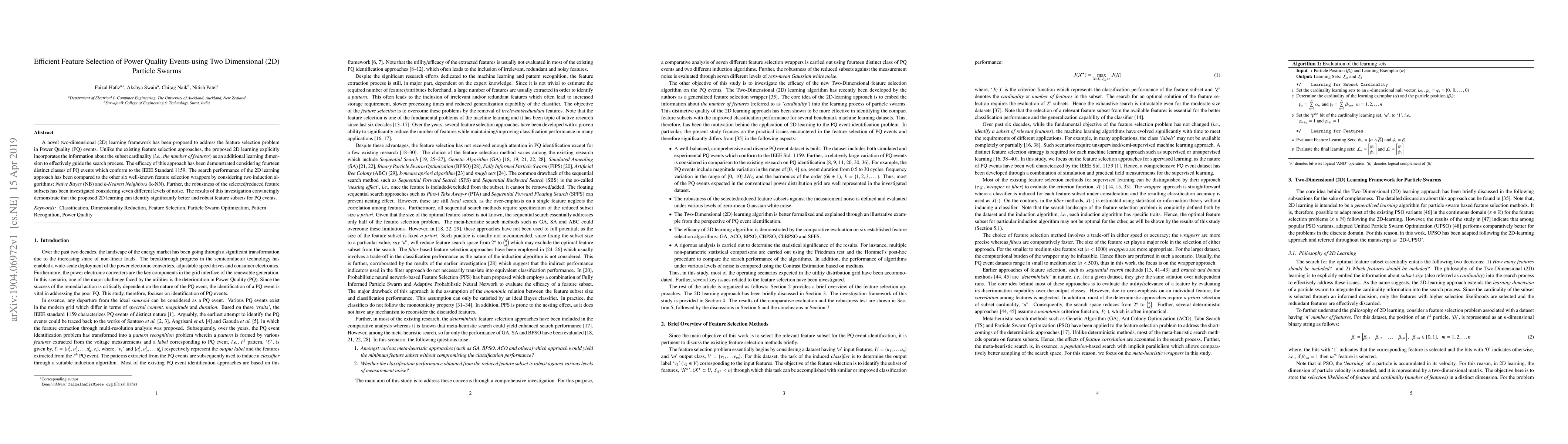 A new method for feature selection in power quality events uses a 2D learning framework that incorporates subset cardinality as an additional dimension to improve search performance. This approach outperforms existing methods with better and more robust results.