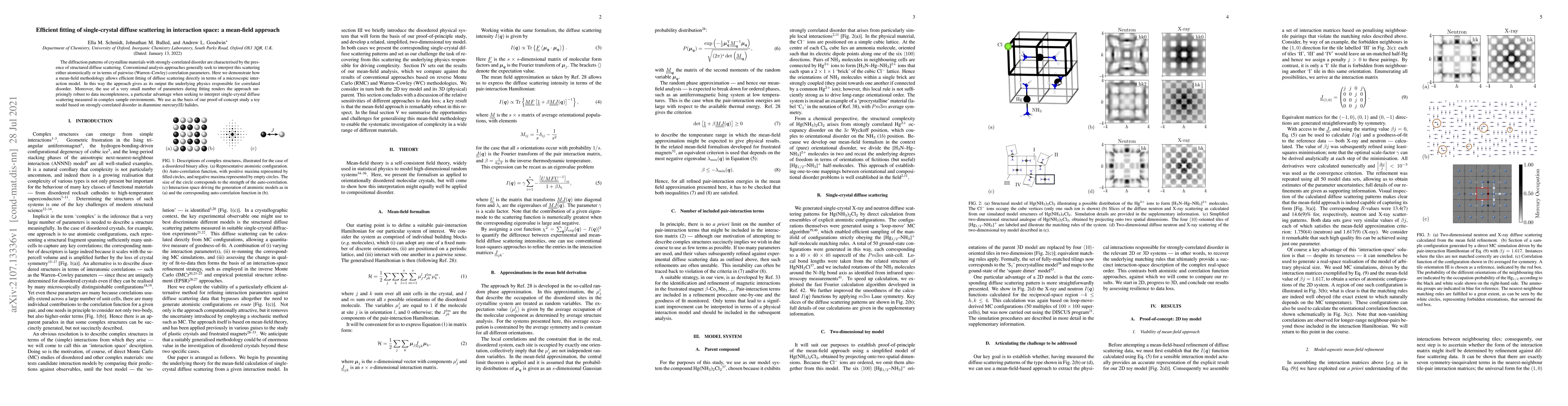 This paper proposes a mean-field approach to efficiently fit single-crystal diffuse scattering data, offering a microscopic interaction model as output. The method is robust to data incompleteness and uses a minimal number of parameters, demonstrated through a proof-of-concept study on diammine mercury(II) halides.