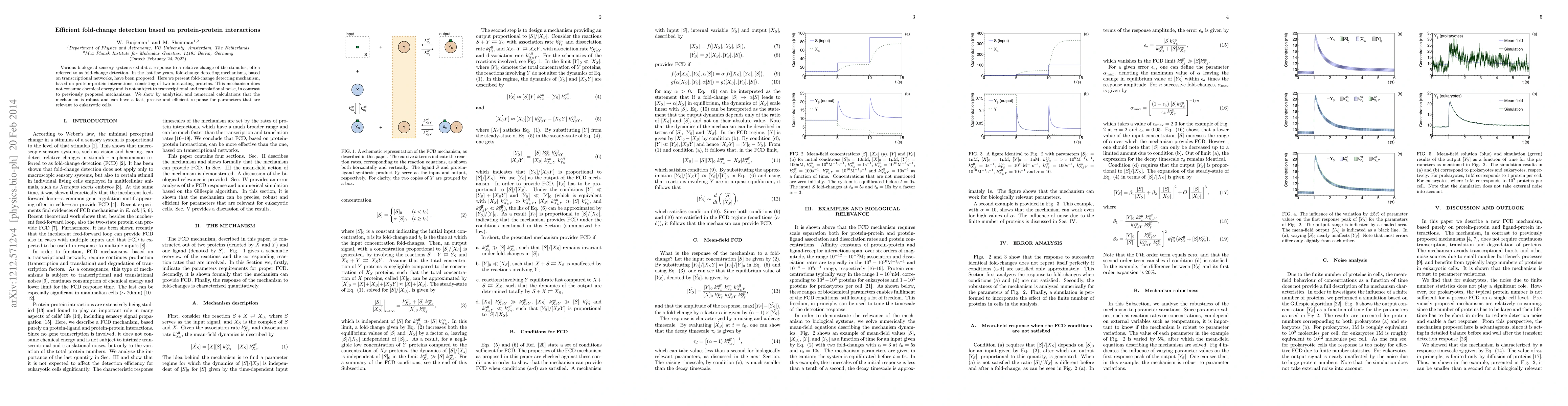 This paper proposes a novel fold-change detection mechanism based on protein-protein interactions, which efficiently detects relative changes without energy consumption and is less affected by noise compared to transcriptional networks. The mechanism is shown to be both fast and precise through analytical and numerical calculations relevant to eukaryotic cells.