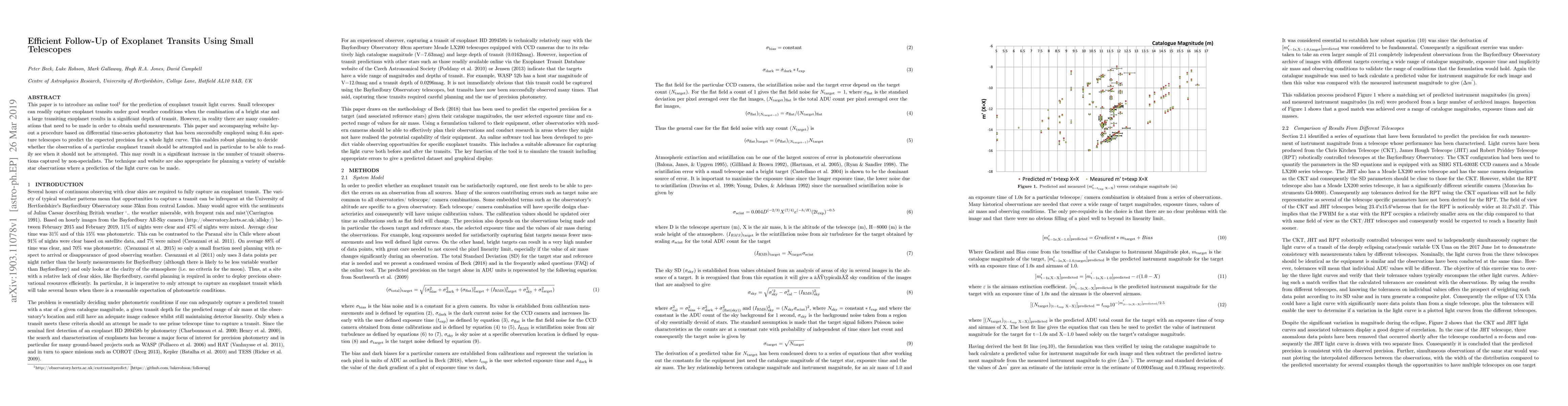 The paper introduces an online tool for predicting exoplanet transit light curves using time series differential photometry, successfully employed with 0.4m aperture telescopes.
