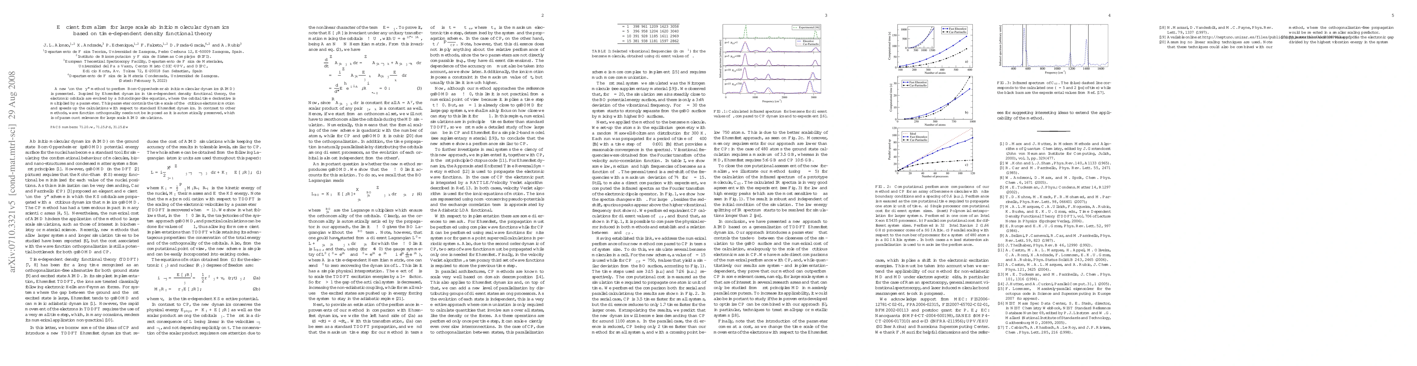 This paper introduces an efficient "on the fly" method for large-scale ab initio molecular dynamics using time-dependent density functional theory, evolving electronic orbitals via a modified Schrödinger-like equation to accelerate calculations while preserving wave function orthogonality without additional constraints.