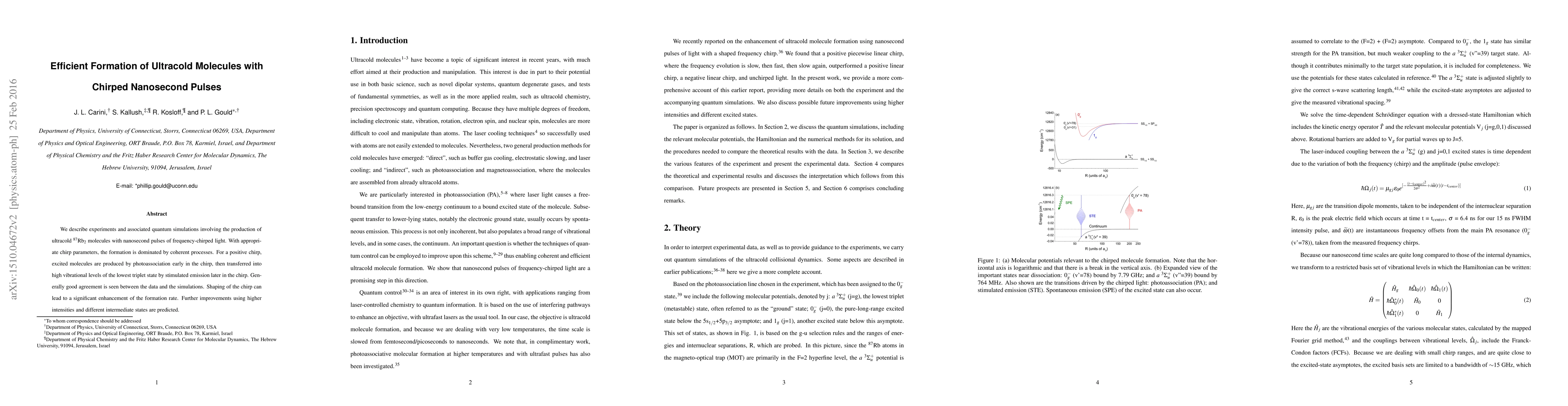 This paper details experiments and simulations on generating ultracold $^{87}$Rb$_{2}$ molecules using chirped nanosecond pulses, showing that coherent processes dominate with appropriate chirp parameters, and that shaping the chirp can significantly enhance the formation rate. Good agreement between experimental data and simulations is observed.