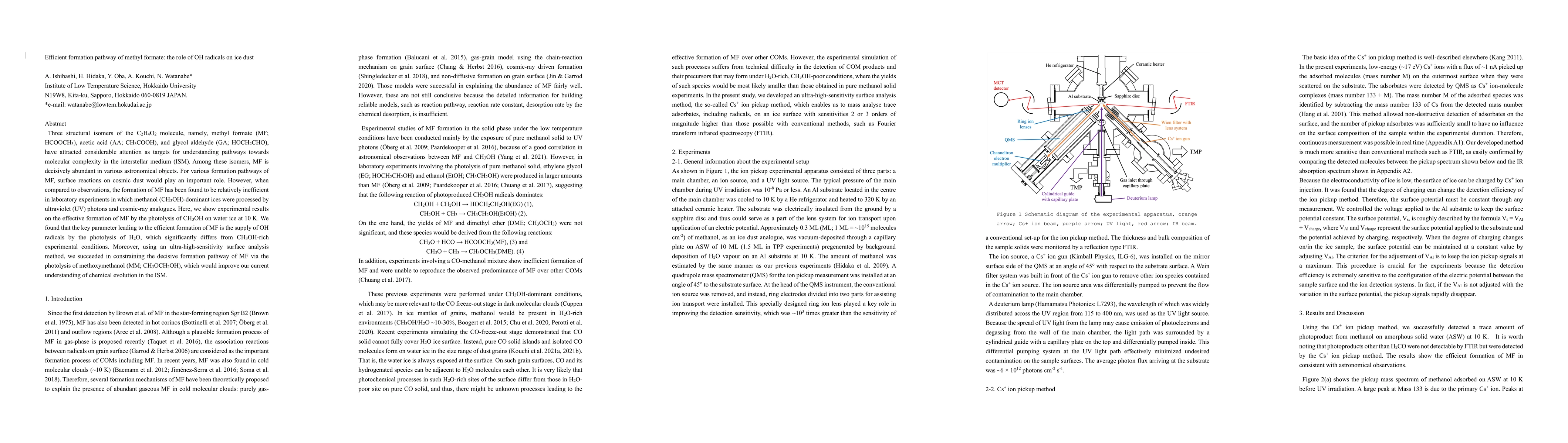 Three structural isomers of the C2H4O2 molecule, namely, methyl formate (MF; HCOOCH3), acetic acid (AA; CH3COOH), and glycol aldehyde (GA; HOCH2CHO), have attracted considerable attention as targets for understanding pathways towards molecular complexity in the interstellar medium (ISM). Among these isomers, MF is decisively abundant in various astronomical objects. For various formation pathways of MF, surface reactions on cosmic dust would play an important role. However, when compared to observations, the formation of MF has been found to be relatively inefficient in laboratory experiments in which methanol (CH3OH)-dominant ices were processed by ultraviolet (UV) photons and cosmic-ray analogues. Here, we show experimental results on the effective formation of MF by the photolysis of CH3OH on water ice at 10 K. We found that the key parameter leading to the efficient formation of MF is the supply of OH radicals by the photolysis of H2O, which significantly differs from CH3OH-rich experimental conditions. Moreover, using an ultra-high-sensitivity surface analysis method, we succeeded in constraining the decisive formation pathway of MF via the photolysis of methoxymethanol (MM; CH3OCH2OH), which would improve our current understanding of chemical evolution in the ISM.