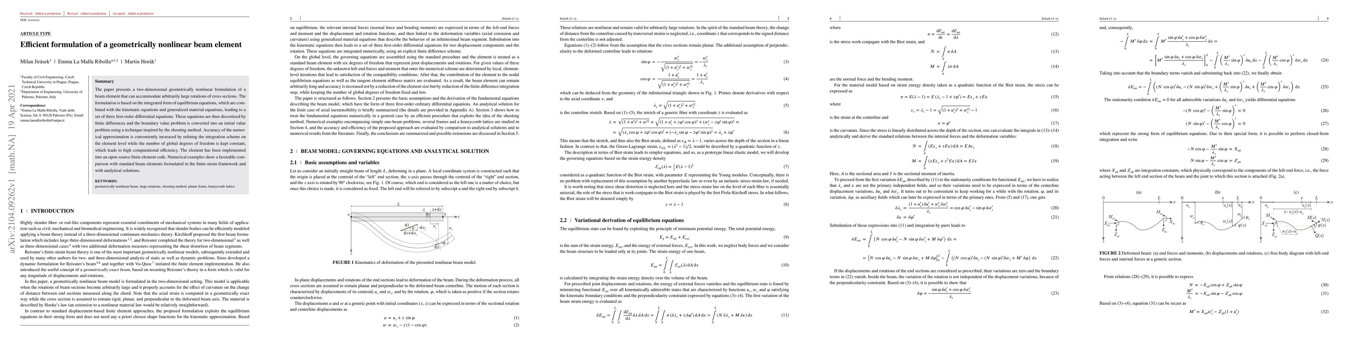 A new beam element formulation allows for large rotations of cross-sections with high computational efficiency, outperforming traditional finite-strain methods and analytical solutions.