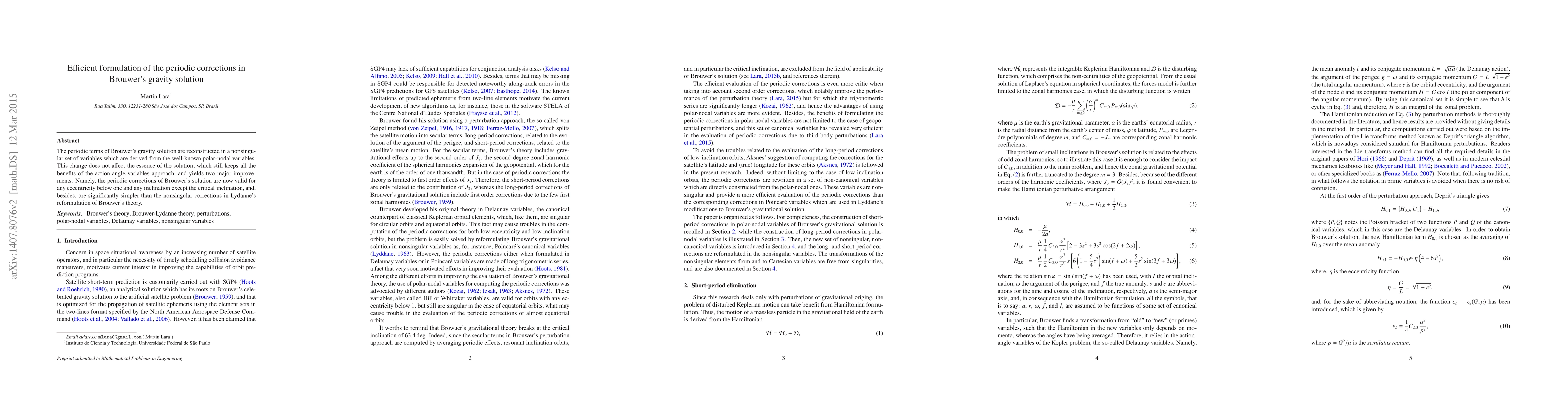 Researchers improved Brouwer's gravity solution by reformulating its periodic corrections in a simpler way, making them valid for wider ranges of parameters, including any eccentricity below one and most inclinations.