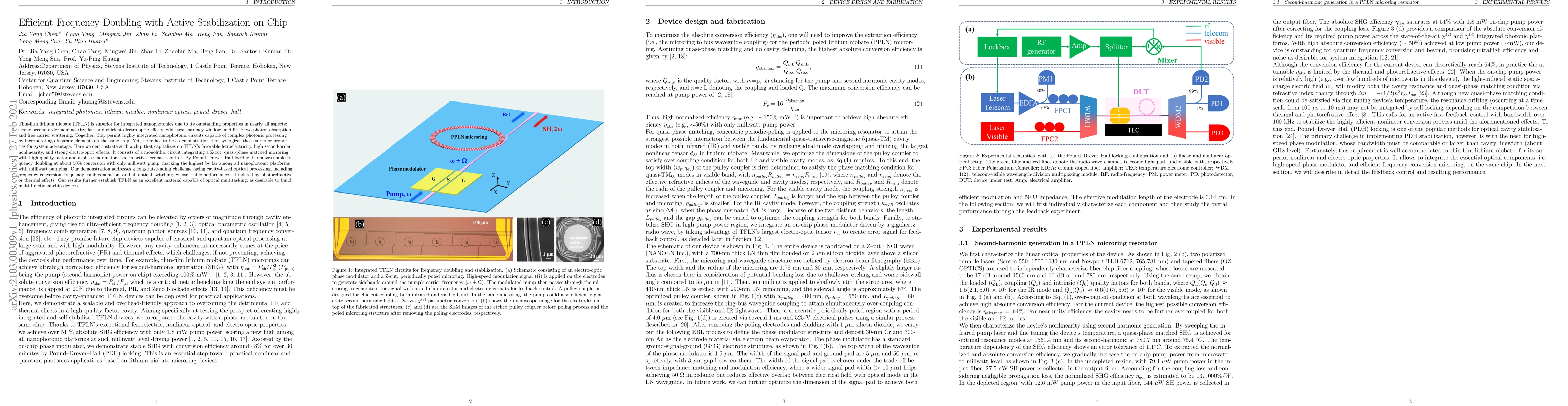 Researchers demonstrate a chip that efficiently doubles frequencies using lithium niobate crystals with active stabilization, achieving 50% conversion efficiency at milliwatt pump levels.