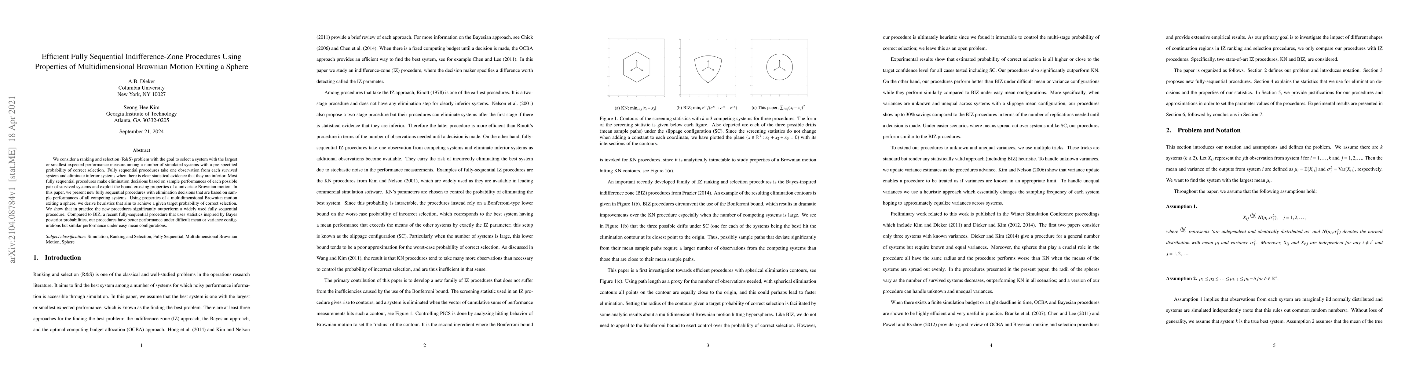 We consider a ranking and selection (R&S) problem with the goal to select a system with the largest or smallest expected performance measure among a number of simulated systems with a pre-specified probability of correct selection. Fully sequential procedures take one observation from each survived system and eliminate inferior systems when there is clear statistical evidence that they are inferior. Most fully sequential procedures make elimination decisions based on sample performances of each possible pair of survived systems and exploit the bound crossing properties of a univariate Brownian motion. In this paper, we present new fully sequential procedures with elimination decisions that are based on sample performances of all competing systems. Using properties of a multidimensional Brownian motion exiting a sphere, we derive heuristics that aim to achieve a given target probability of correct selection. We show that in practice the new procedures significantly outperform a widely used fully sequential procedure. Compared to BIZ, a recent fully-sequential procedure that uses statistics inspired by Bayes posterior probabilities, our procedures have better performance under difficult mean or variance configurations but similar performance under easy mean configurations.