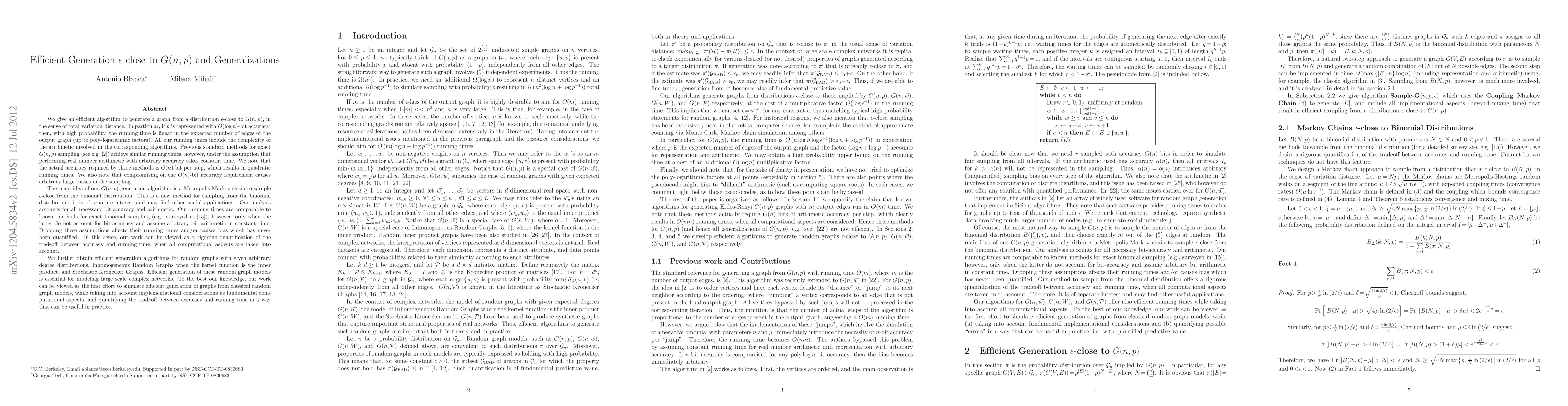 This paper presents an efficient algorithm to generate graphs close to G(n,p) in total variation distance, with running time linear in the expected number of edges, considering bit-accuracy and arithmetic costs. It also introduces a new method for sampling from the binomial distribution and extends to other graph models like inhomogeneous random graphs and stochastic Kronecker graphs.