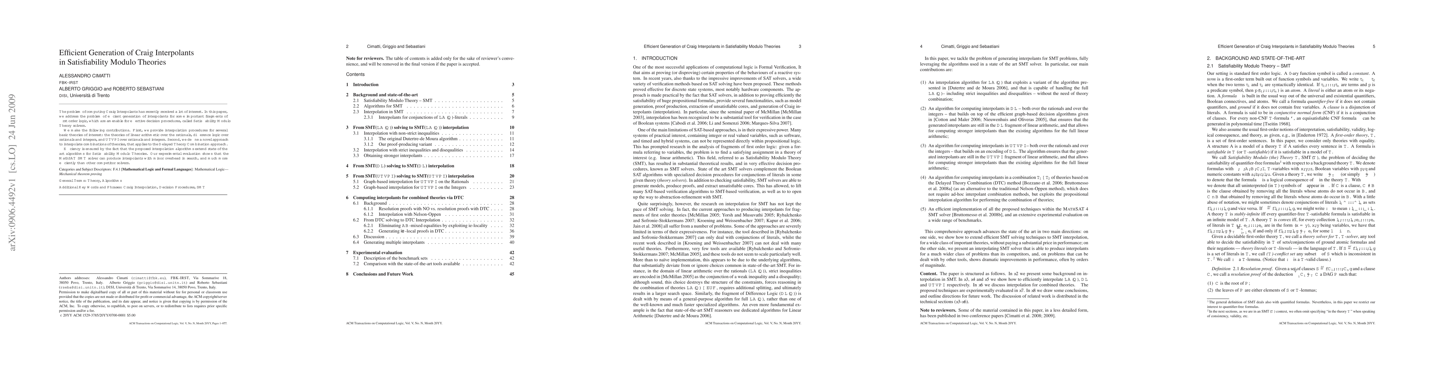 This paper presents efficient interpolation procedures for several important theories, including linear arithmetic, difference logic, and UTVPI, and introduces a novel approach for combining these theories. The proposed algorithms extend existing Satisfiability Modulo Theories solvers, demonstrating improved efficiency in generating interpolants with MathSAT.
