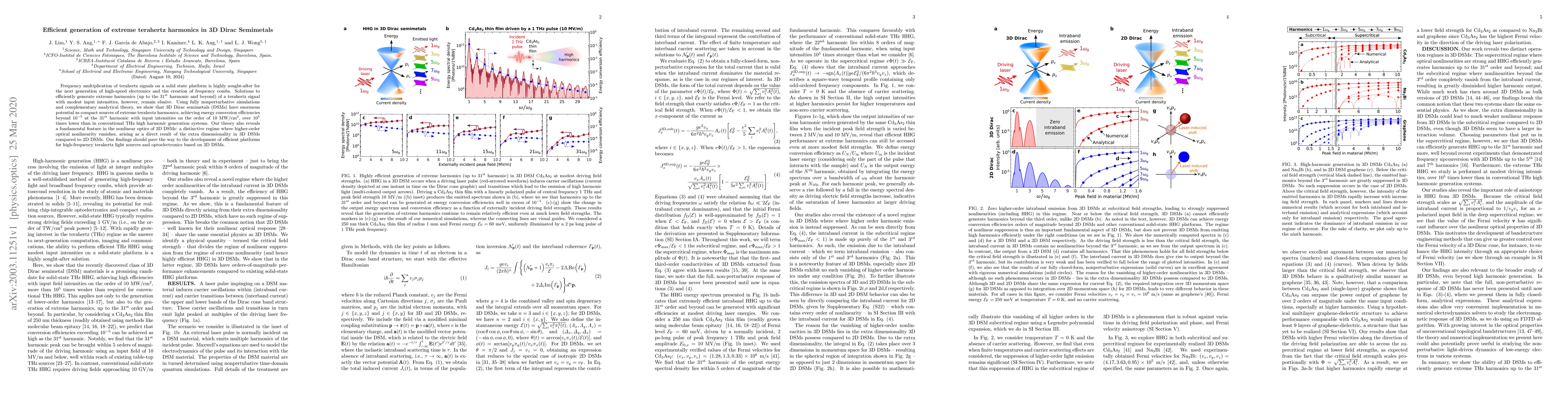 Research demonstrates efficient generation of extreme terahertz harmonics in 3D Dirac semimetals, achieving high energy conversion efficiencies at modest input intensities. This discovery highlights a unique regime in 3D DSMs where higher-order optical nonlinearity diminishes, potentially leading to advanced terahertz light sources and optoelectronics.