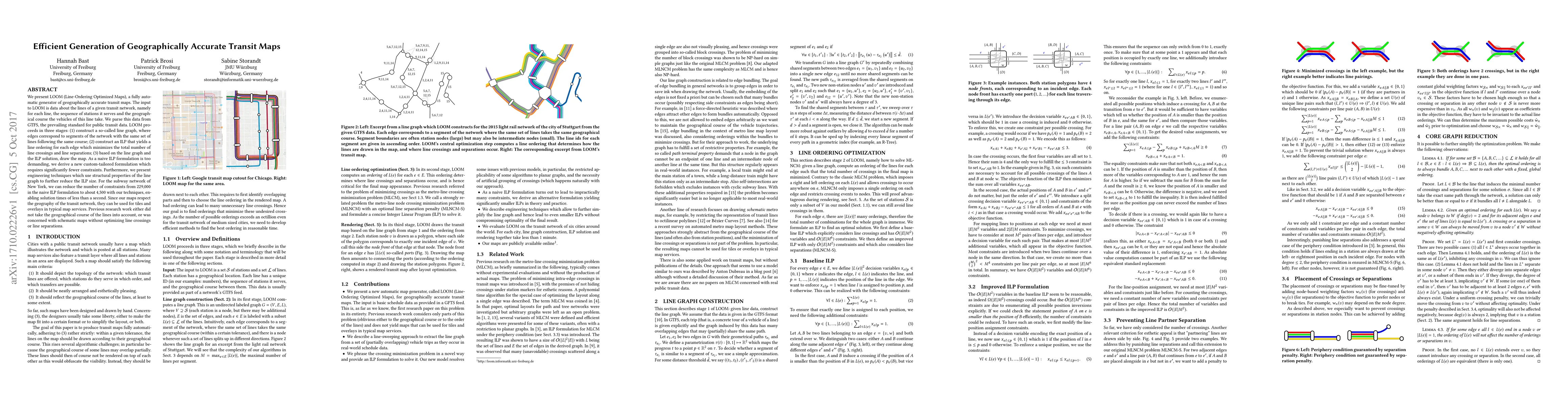 We present LOOM (Line-Ordering Optimized Maps), a fully automatic generator of geographically accurate transit maps. The input to LOOM is data about the lines of a given transit network, namely for each line, the sequence of stations it serves and the geographical course the vehicles of this line take. We parse this data from GTFS, the prevailing standard for public transit data. LOOM proceeds in three stages: (1) construct a so-called line graph, where edges correspond to segments of the network with the same set of lines following the same course; (2) construct an ILP that yields a line ordering for each edge which minimizes the total number of line crossings and line separations; (3) based on the line graph and the ILP solution, draw the map. As a naive ILP formulation is too demanding, we derive a new custom-tailored formulation which requires significantly fewer constraints. Furthermore, we present engineering techniques which use structural properties of the line graph to further reduce the ILP size. For the subway network of New York, we can reduce the number of constraints from 229,000 in the naive ILP formulation to about 4,500 with our techniques, enabling solution times of less than a second. Since our maps respect the geography of the transit network, they can be used for tiles and overlays in typical map services. Previous research work either did not take the geographical course of the lines into account, or was concerned with schematic maps without optimizing line crossings or line separations.