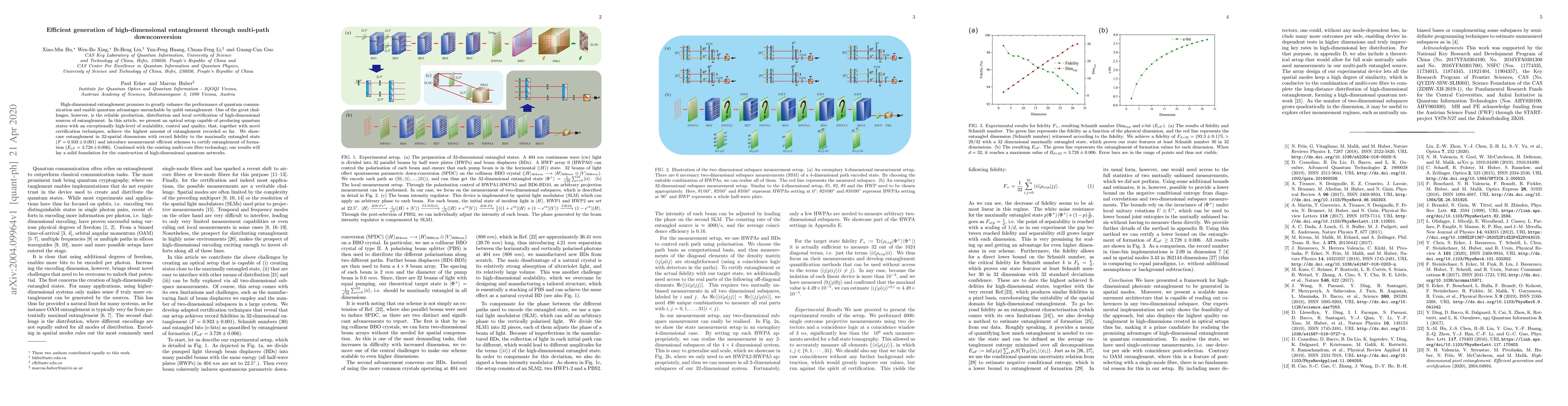 This paper presents an optical setup for generating high-dimensional entanglement through multi-path downconversion, achieving record fidelity and entanglement of formation in $32$-spatial dimensions. The scalable and controlled quantum states, along with novel certification techniques, pave the way for advanced quantum communication networks.