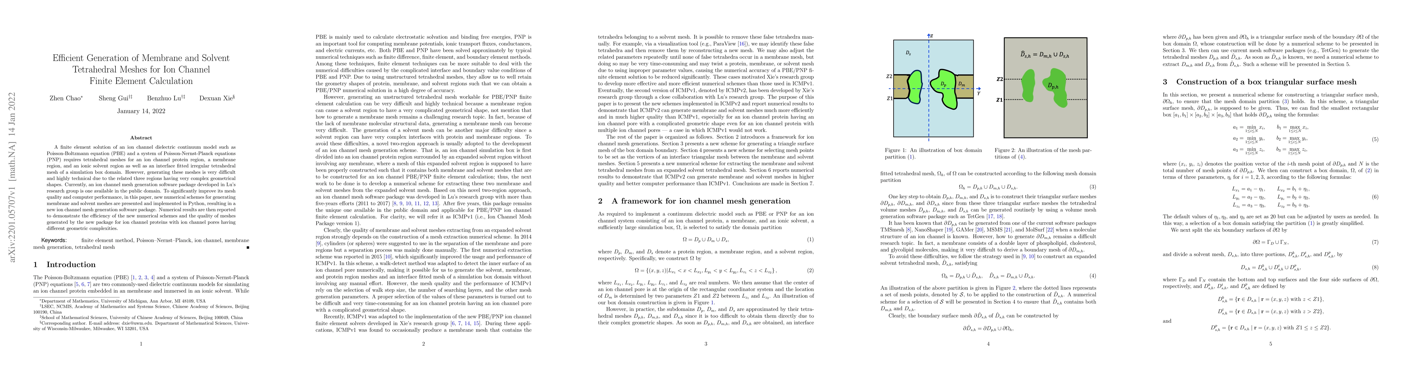 This paper introduces new numerical schemes in Python for generating high-quality tetrahedral meshes for membrane and solvent regions in ion channel simulations, significantly improving the performance and quality of the existing mesh generation software developed by Lu's research group. The new methods are demonstrated to be efficient and effective for ion channels with varying geometric complexities.