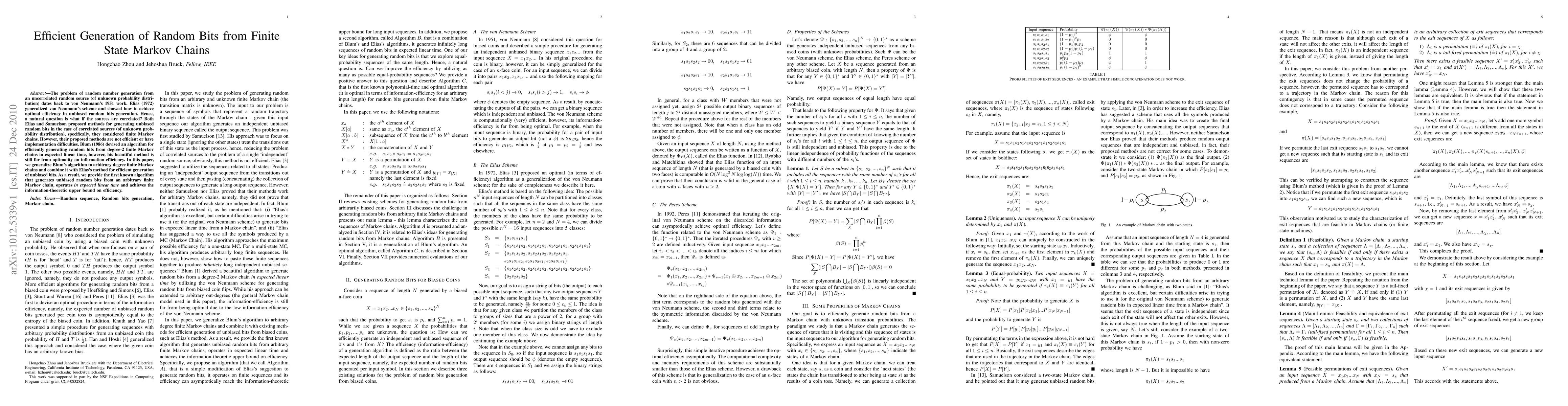 This paper presents an algorithm for generating unbiased random bits from arbitrary degree finite Markov chains, achieving expected linear time performance and reaching the information-theoretic efficiency bound, thus generalizing previous methods and addressing implementation inefficiencies.