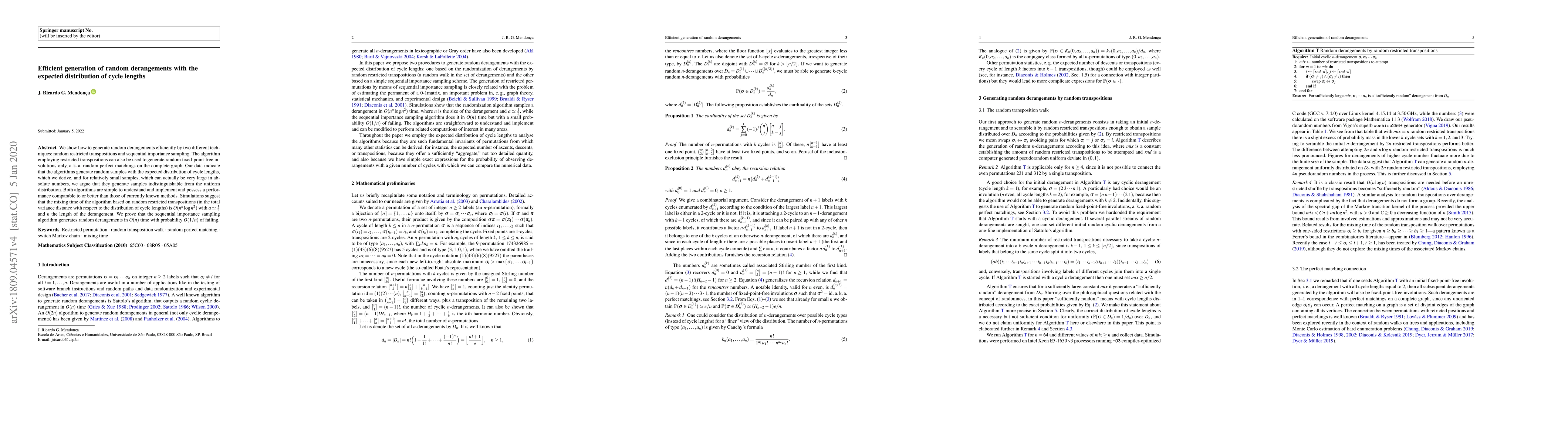 Researchers developed efficient algorithms to generate random derangements with the expected distribution of cycle lengths, outperforming existing methods in simplicity and performance.