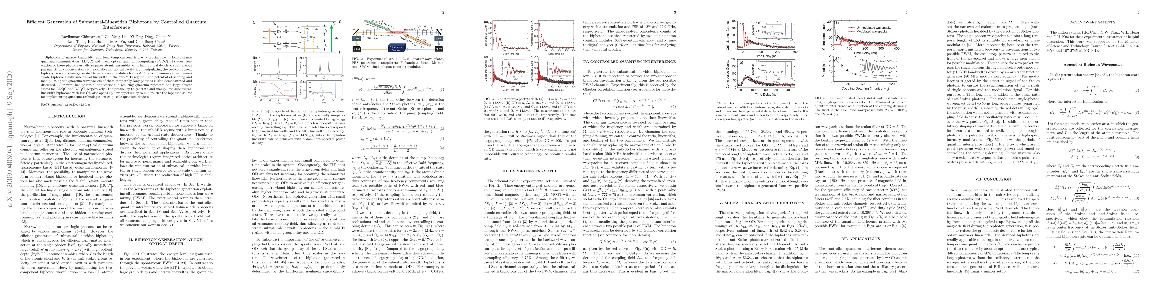 This paper demonstrates the efficient generation of biphotons with subnatural linewidths using low-optical-depth atomic ensembles through controlled quantum interference, offering potential for quantum communication and computing. The technique may facilitate the miniaturization of biphoton sources for chip-scale quantum devices.