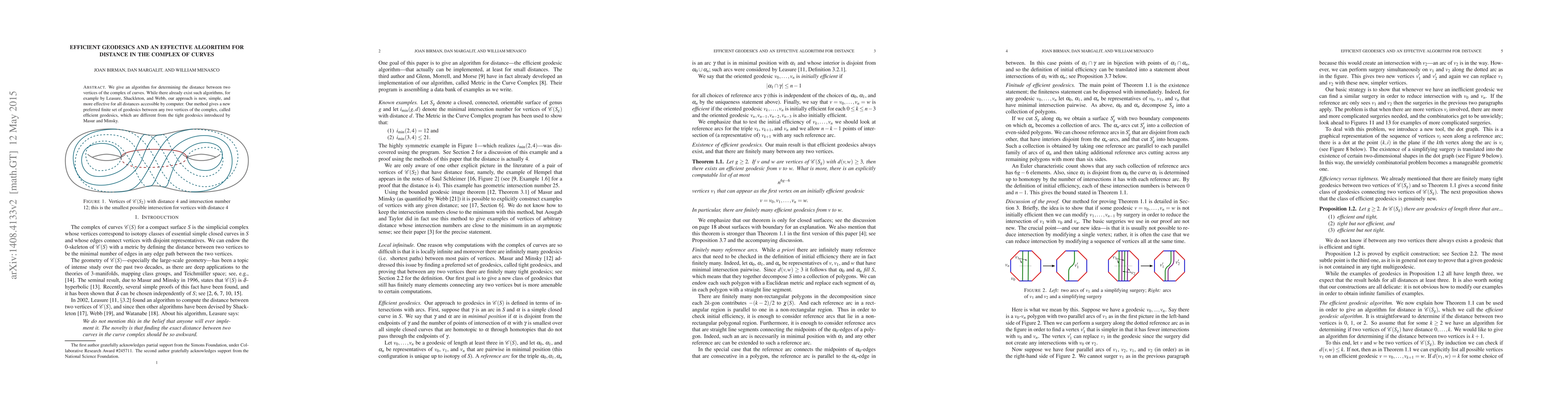 The paper introduces an algorithm for calculating distances in a complex of curves, providing a new preferred set of efficient geodesics between any two vertices, which outperforms existing methods.