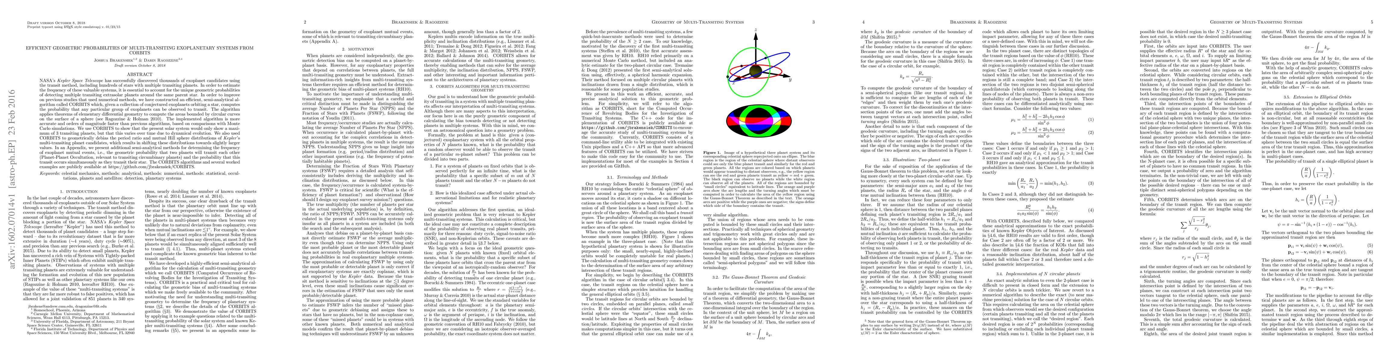 NASA's Kepler Space Telescope has successfully discovered thousands of exoplanet candidates using the transit method, including hundreds of stars with multiple transiting planets. In order to estimate the frequency of these valuable systems, it is essential to account for the unique geometric probabilities of detecting multiple transiting extrasolar planets around the same parent star. In order to improve on previous studies that used numerical methods, we have constructed an efficient, semi-analytical algorithm called CORBITS which, given a collection of conjectured exoplanets orbiting a star, computes the probability that any particular group of exoplanets can be observed to transit. The algorithm applies theorems of elementary differential geometry to compute the areas bounded by circular curves on the surface of a sphere (see Ragozzine & Holman 2010). The implemented algorithm is more accurate and orders of magnitude faster than previous algorithms, based on comparisons with Monte Carlo simulations. We use CORBITS to show that the present solar system would only show a maximum of 3 transiting planets, but that this varies over time due to dynamical evolution. We also used CORBITS to geometrically debias the period ratio and mutual Hill sphere distributions of Kepler's multi-transiting planet candidates, which results in shifting these distributions towards slightly larger values. In an Appendix, we present additional semi-analytical methods for determining the frequency of exoplanet mutual events, i.e., the geometric probability that two planets will transit each other (Planet-Planet Occultation, relevant to transiting circumbinary planets) and the probability that this transit occurs simultaneously as they transit their star. The CORBITS algorithms and several worked examples are publicly available at https://github.com/jbrakensiek/CORBITS